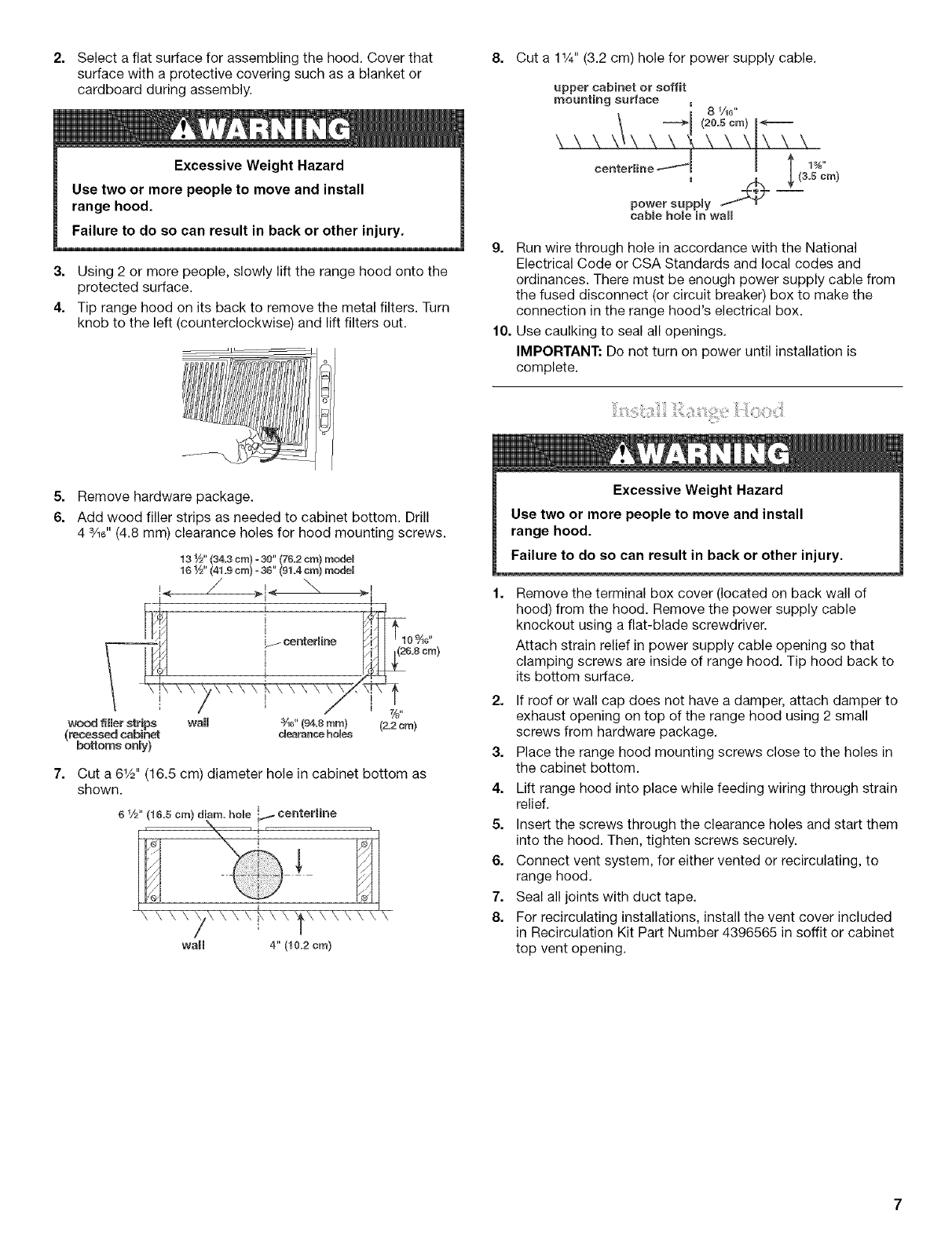 Install Range Hood ....................................................................... 7