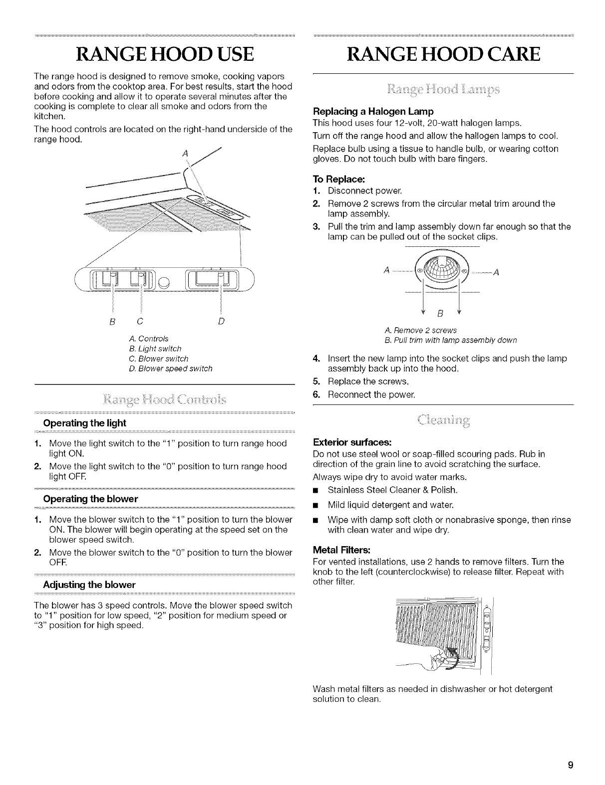 RANGE HOOD CARE ..................................................................... 9