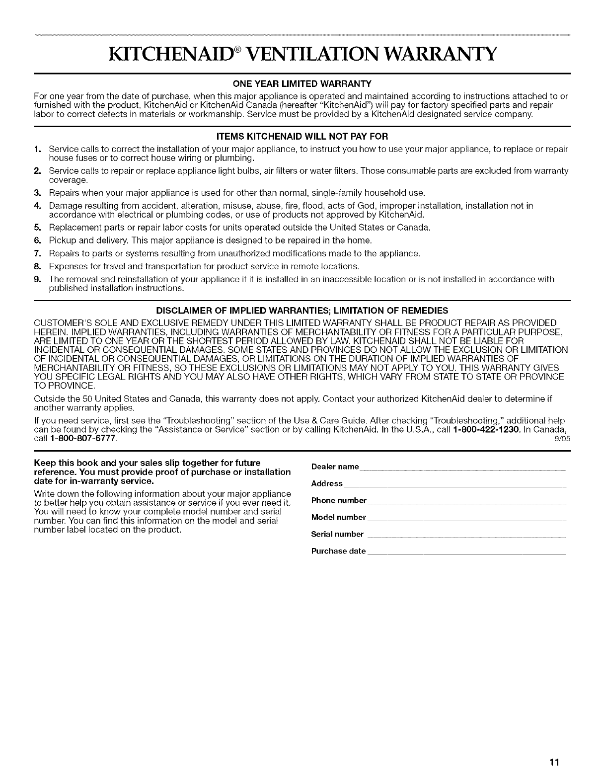 © 2005, All rights reserved. ® Registered Trademark/TM Trademark of KitchenAid, U.S.A., KitchenAid Canada licensee in Canada