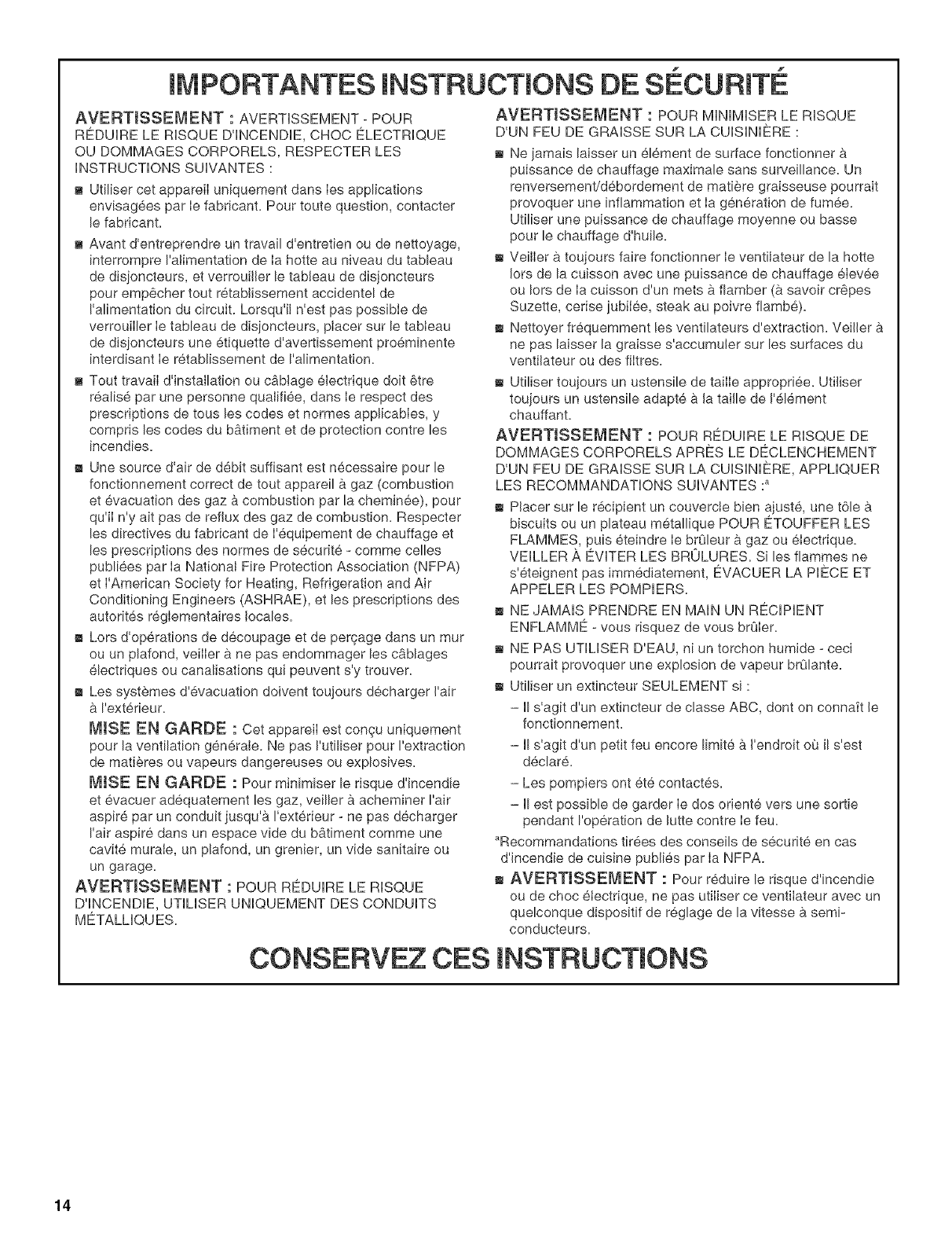 IMPORTANT : LIRE ET CONSERVER CES INSTRUCTIONS.