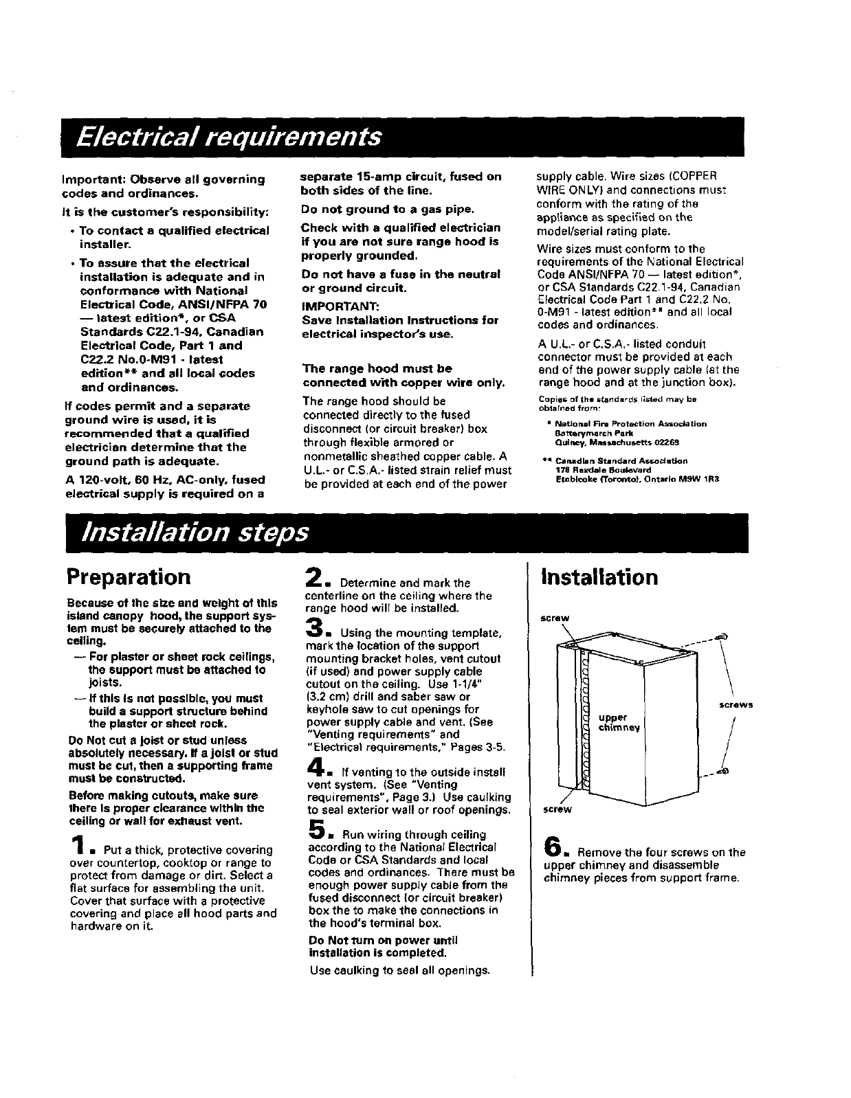 and install island canopy hood.