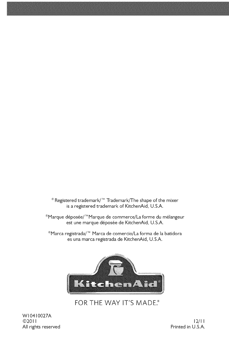 Kitchenaid KP26M1FQBU5 1208263L User Manual 6 QT. STAND MIXER Manuals And Guides