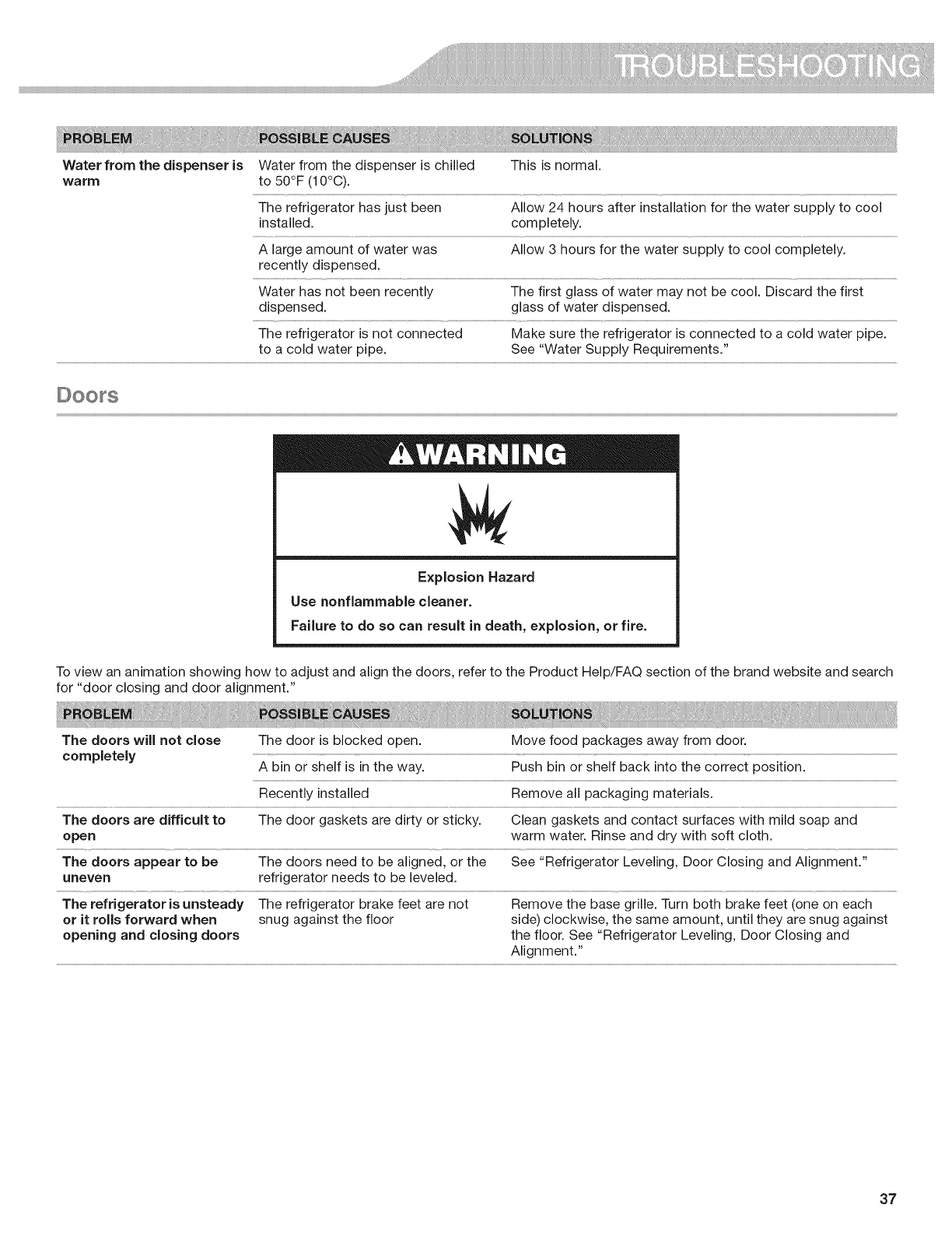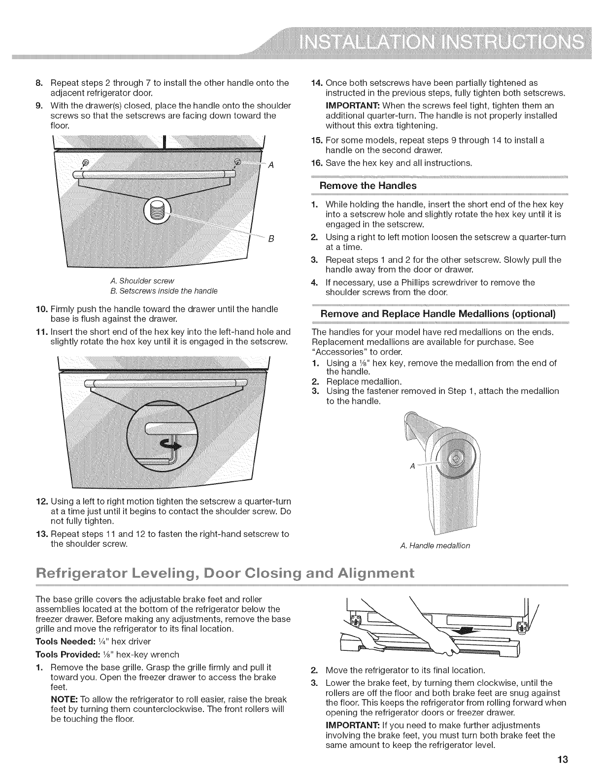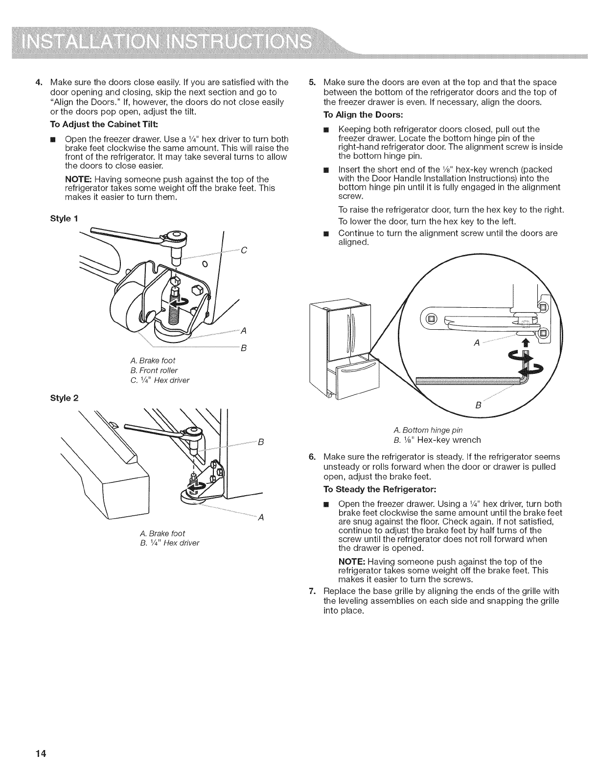 Refrigerator Leveling, Door Closing and Alignment ............ 13