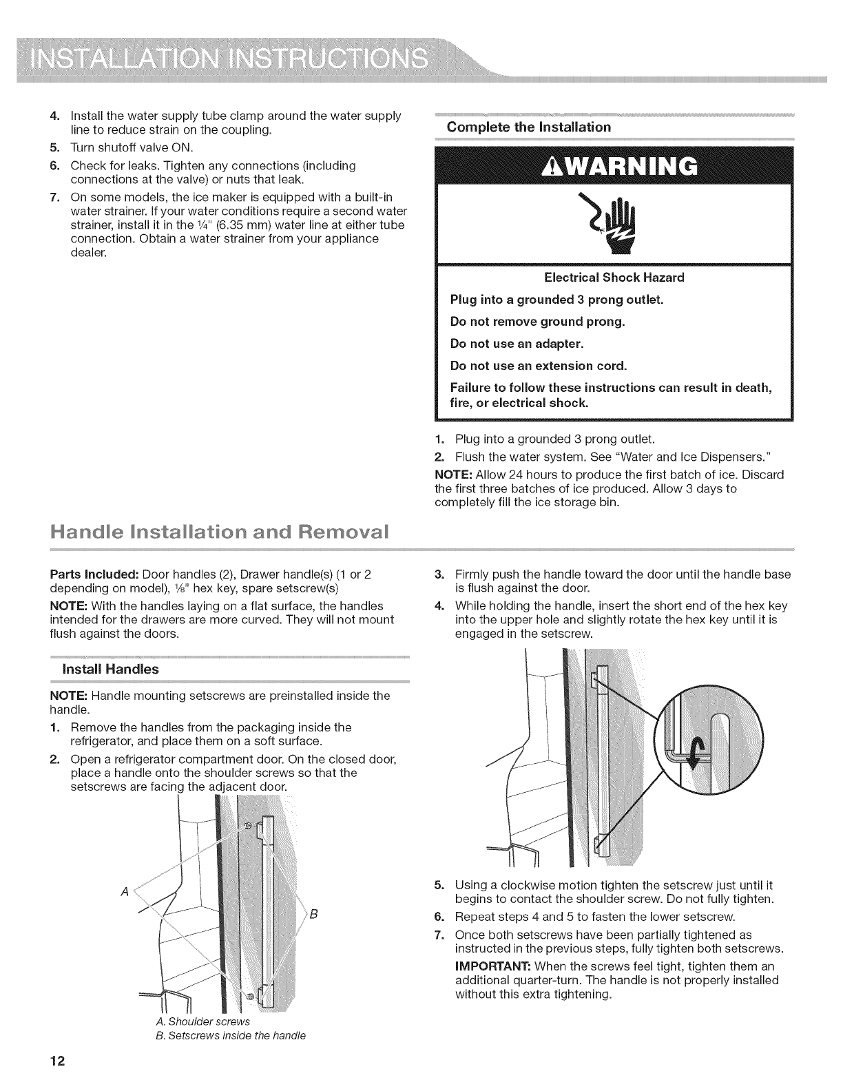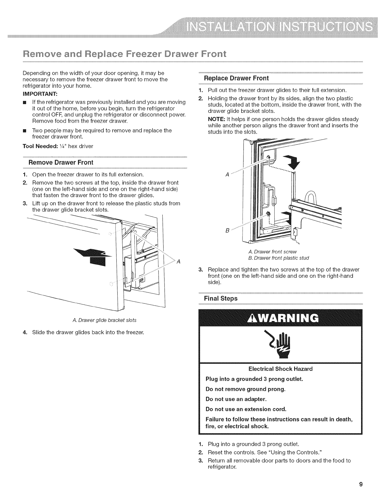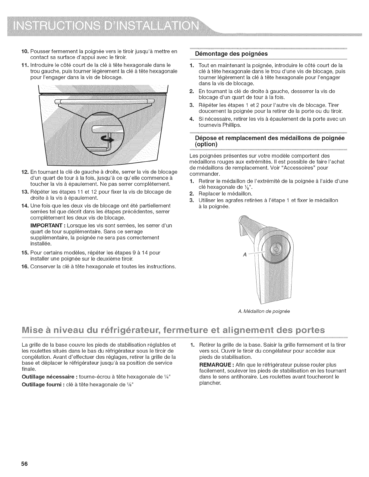 Refrigerator Leveling, Door Closing and Alignment ............ 13