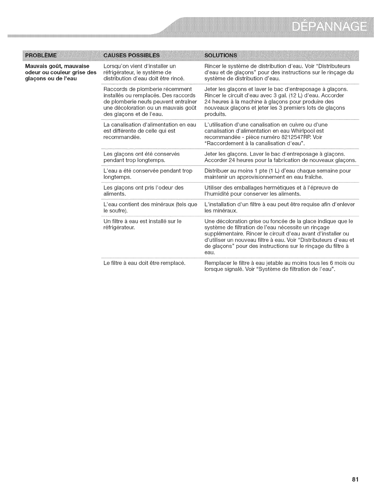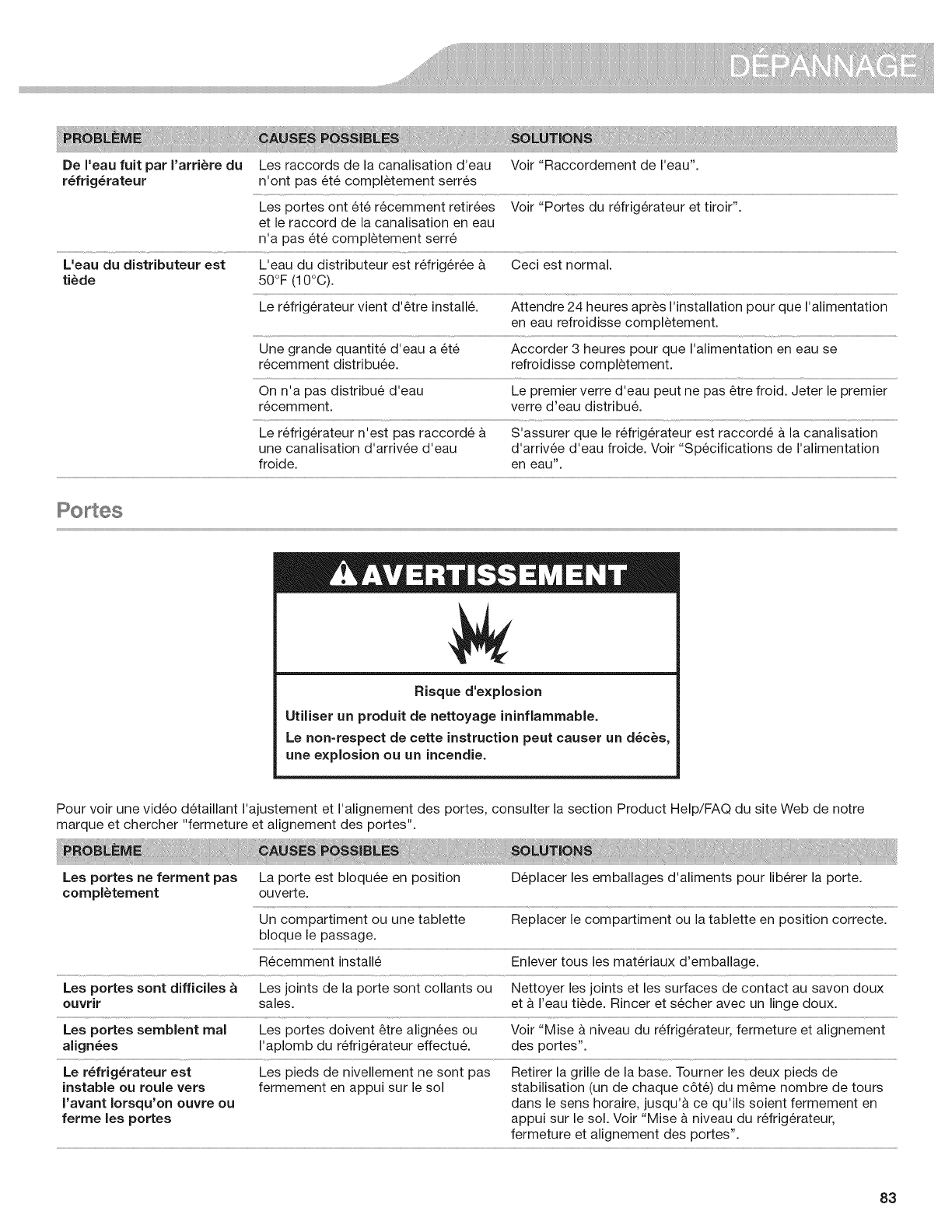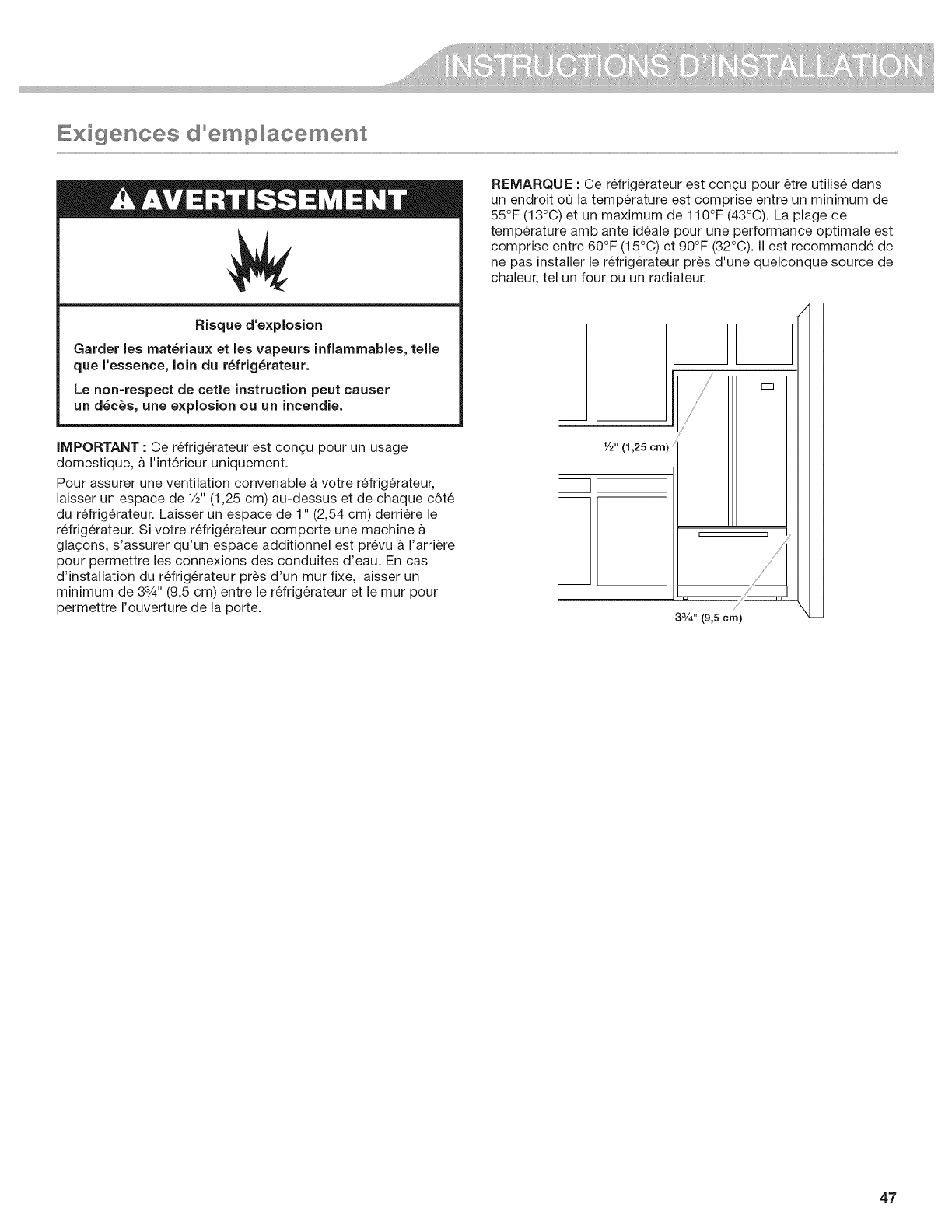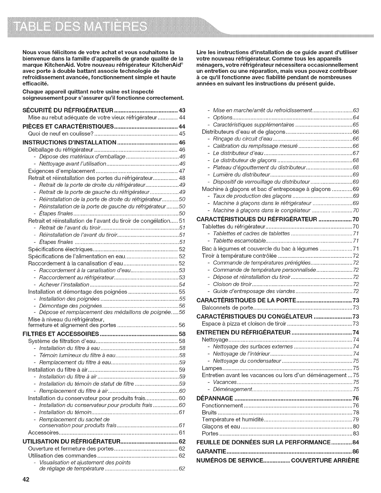 KitchenAid decline toute responsabilite au titre de la qualite, de la durabilite ou en cas de depannage ou de reparation necessaire sur ce gros appareil