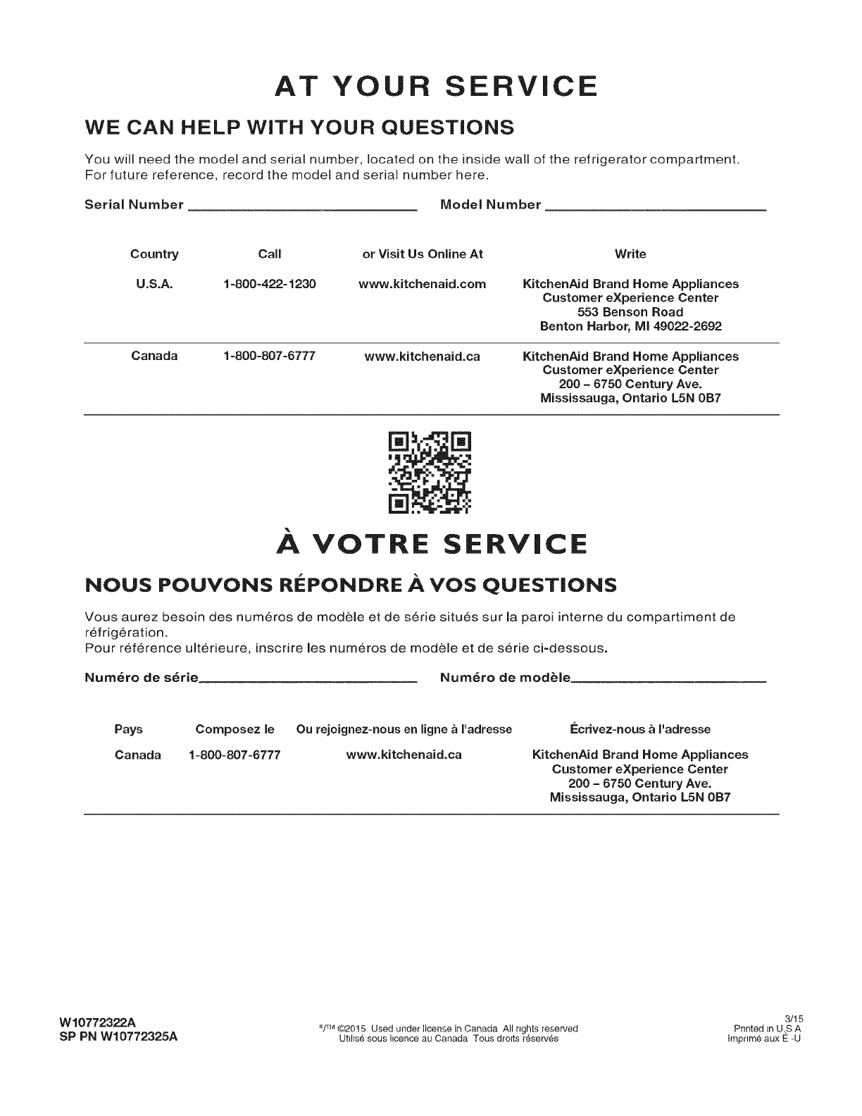 Canada 1-800-807-6777 www.kitchenaid.ca