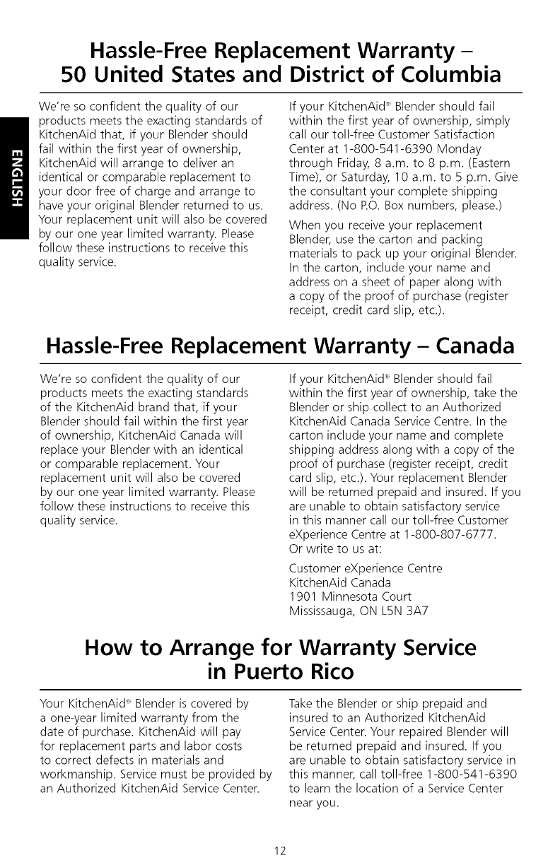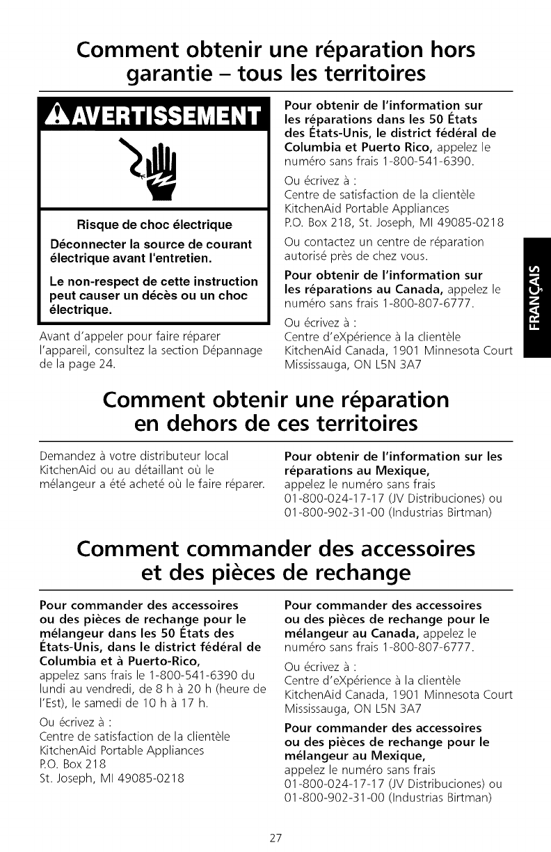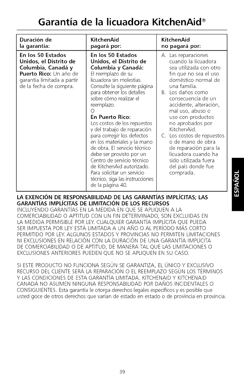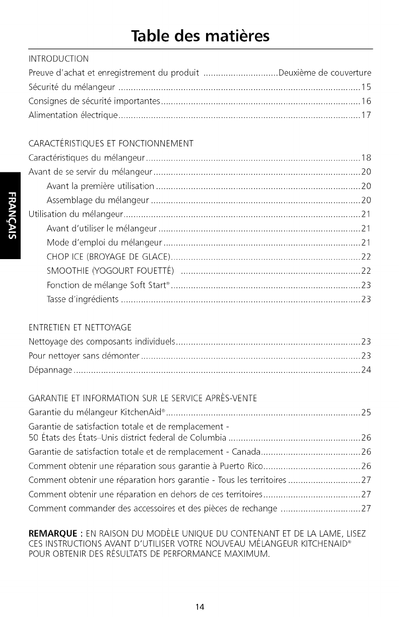 ' Trademark/Marque de commerce/Marca de comercio KitchenAid, U.S.A.