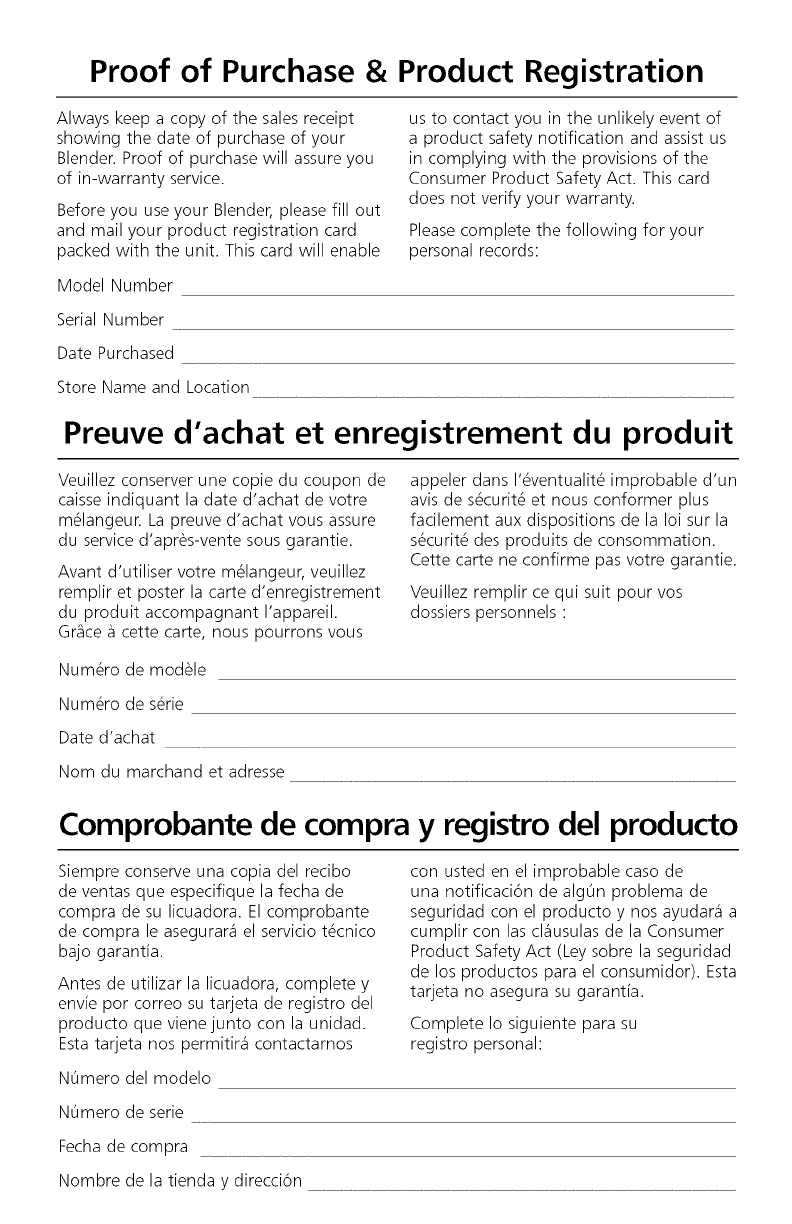 Proof of Purchase & Product Registration ............................................. Inside Front Cover