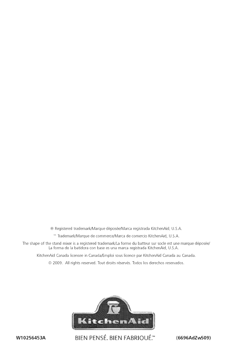 @ Registered trademark/Marque d6pos6e/Marca registrada KitchenAid, U,S,A,