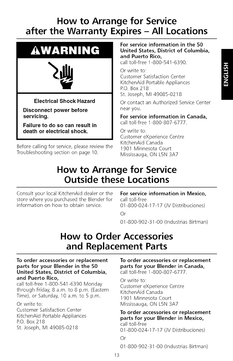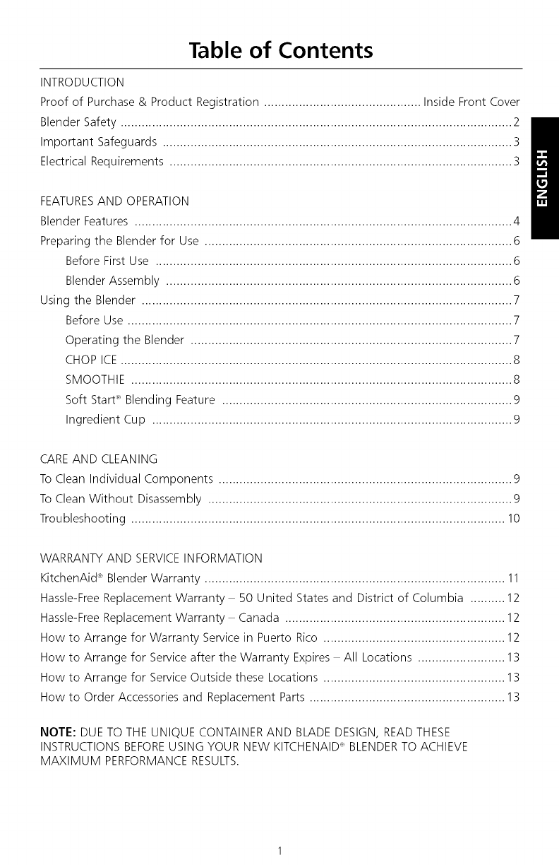 KITCHENAID Blender Manual L0910097 KITCHENAID Blender Owner's Manual, KITCHENAID Blender installation guides