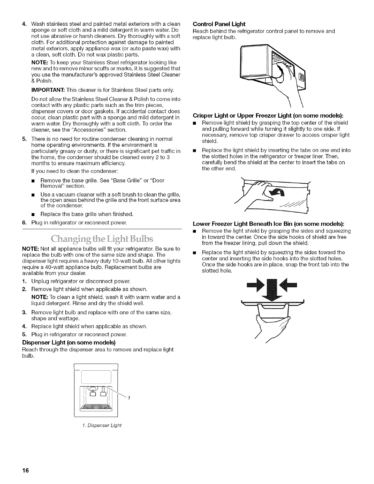 Changing the Light Bulbs ........................................................... 16