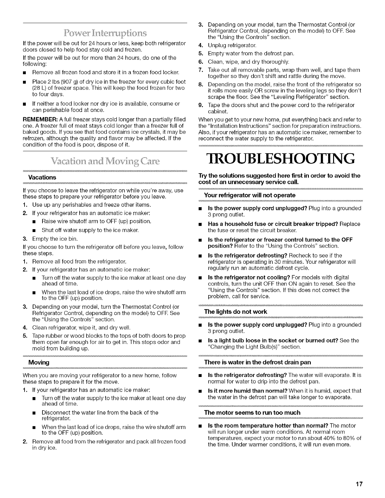 REFRIGERATOR CARE ............................................................... 15