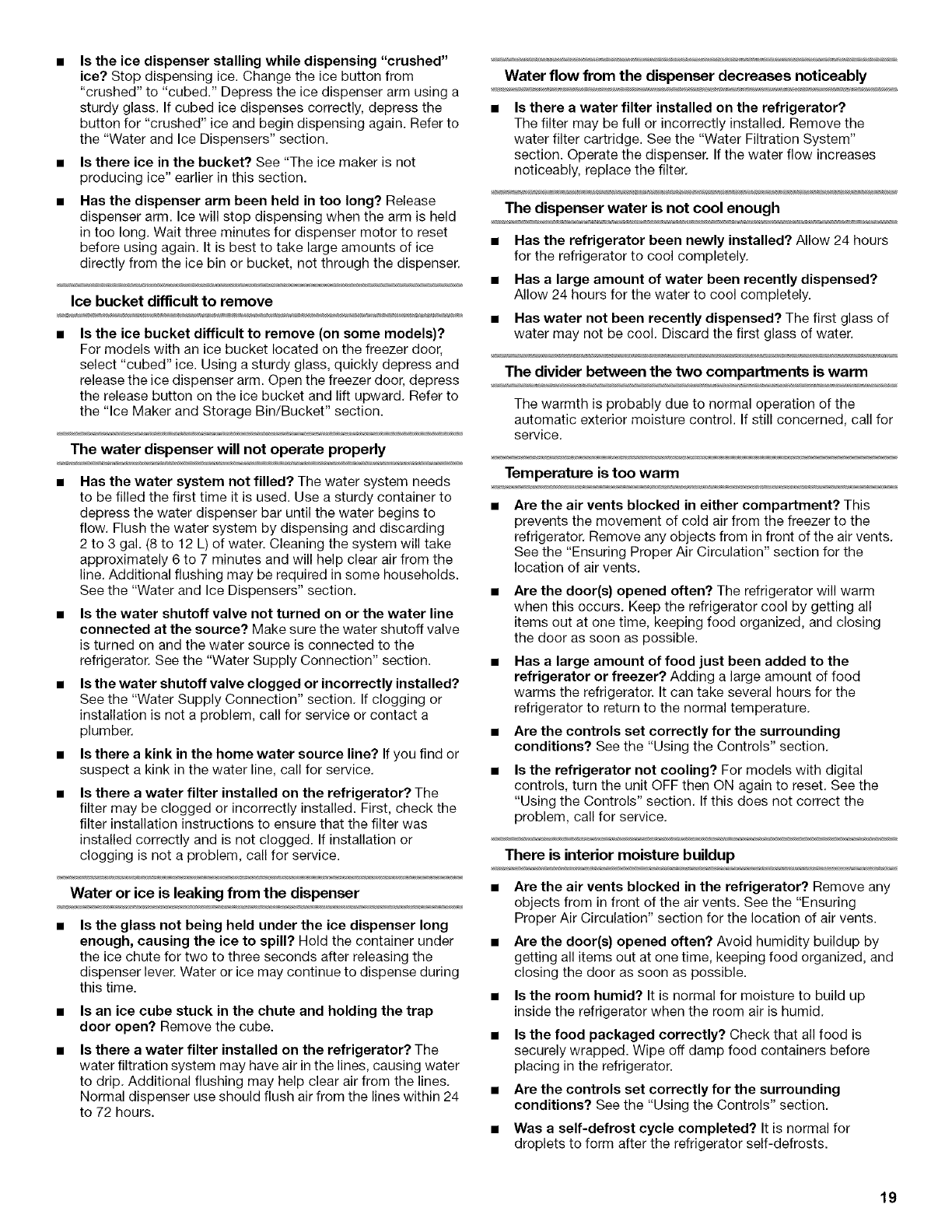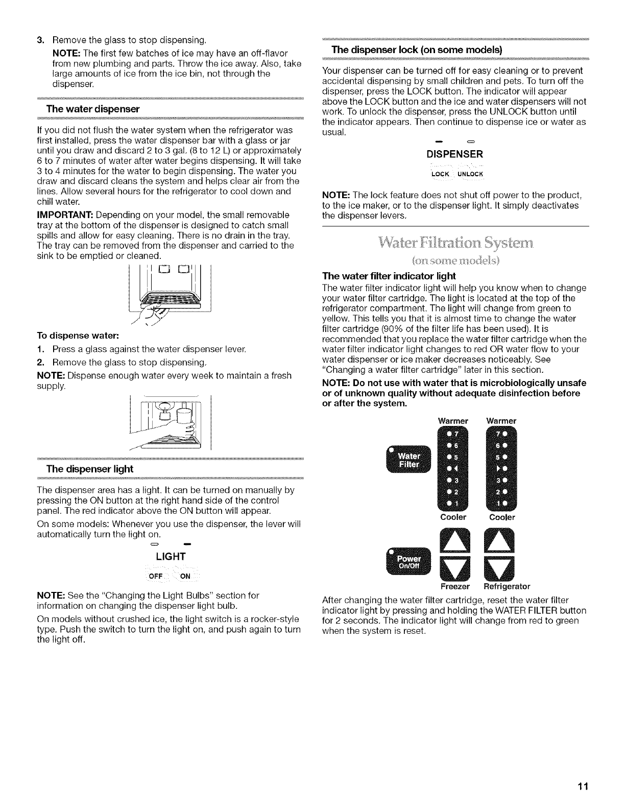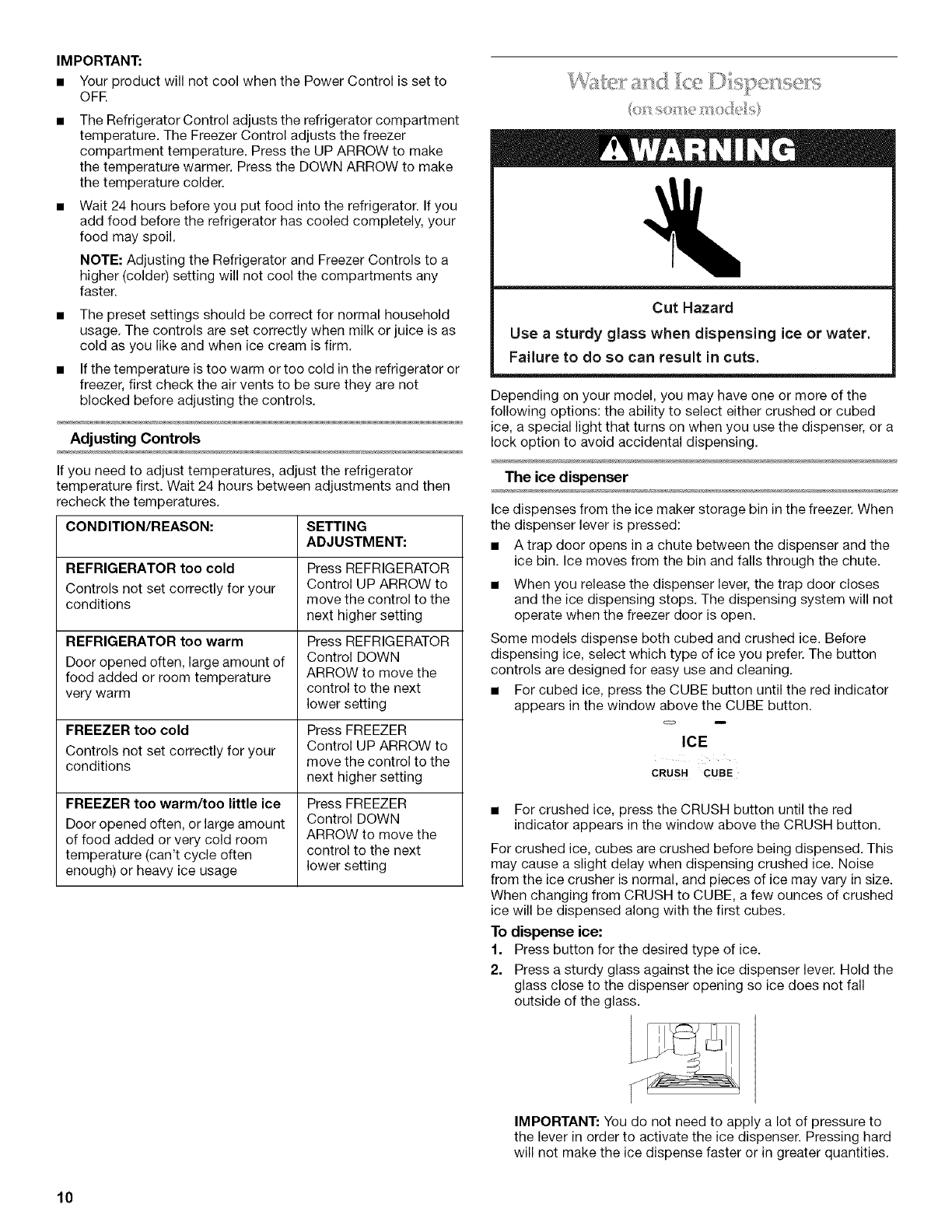Water and Ice Dispensers .......................................................... 10