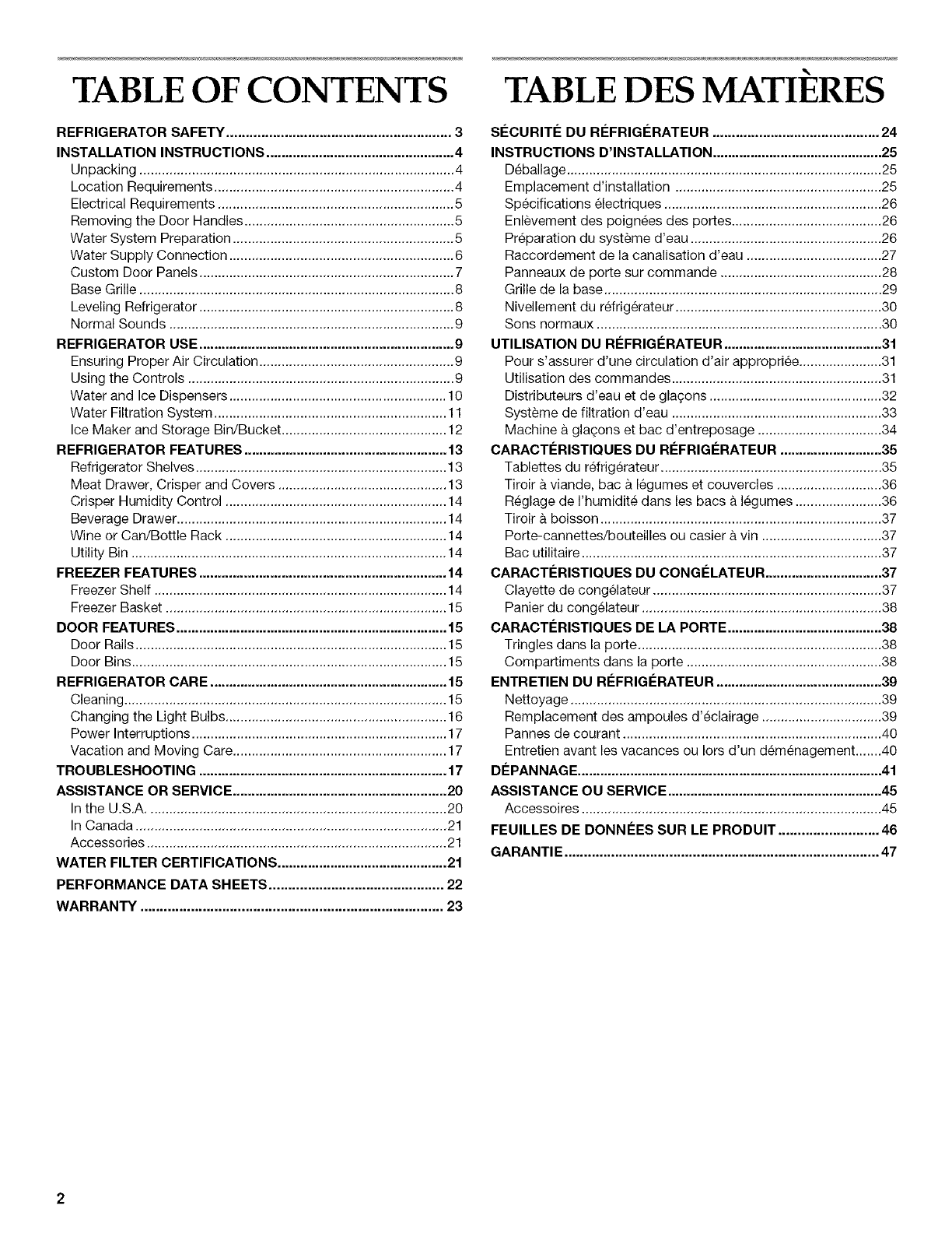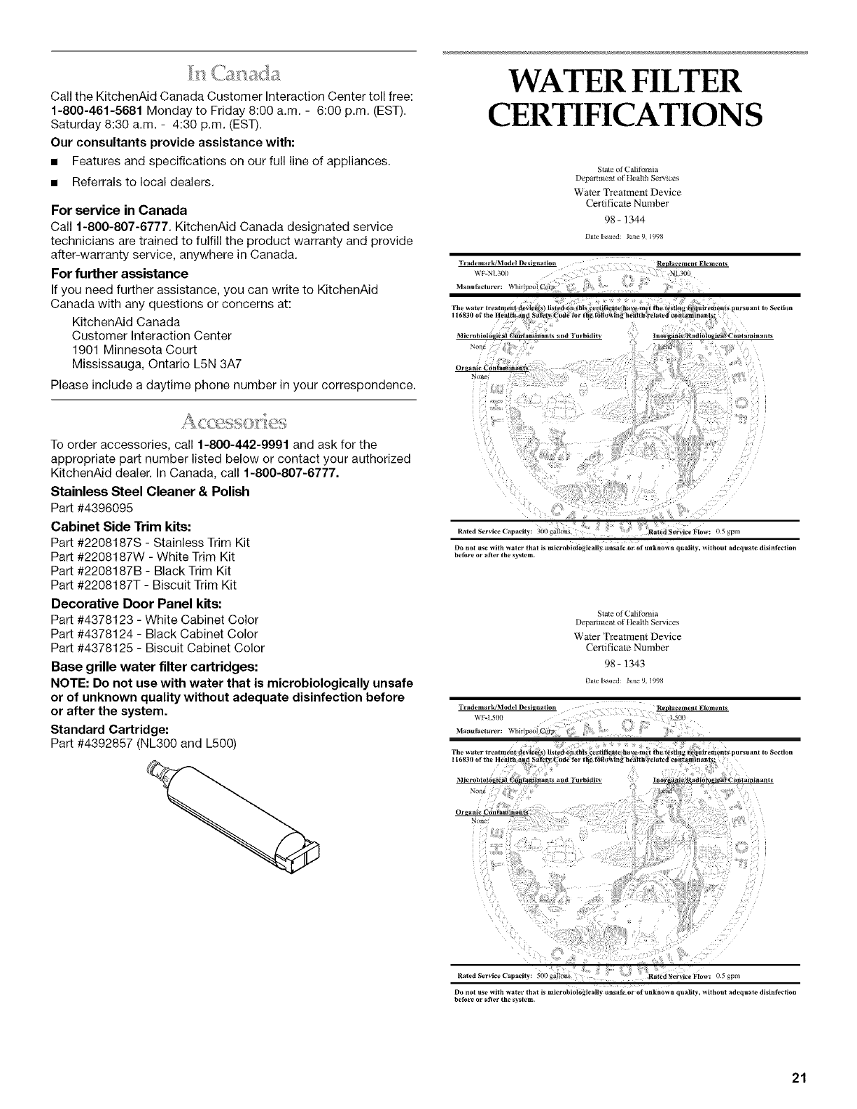 WATER FILTER CERTIFICATIONS ............................................. 21
