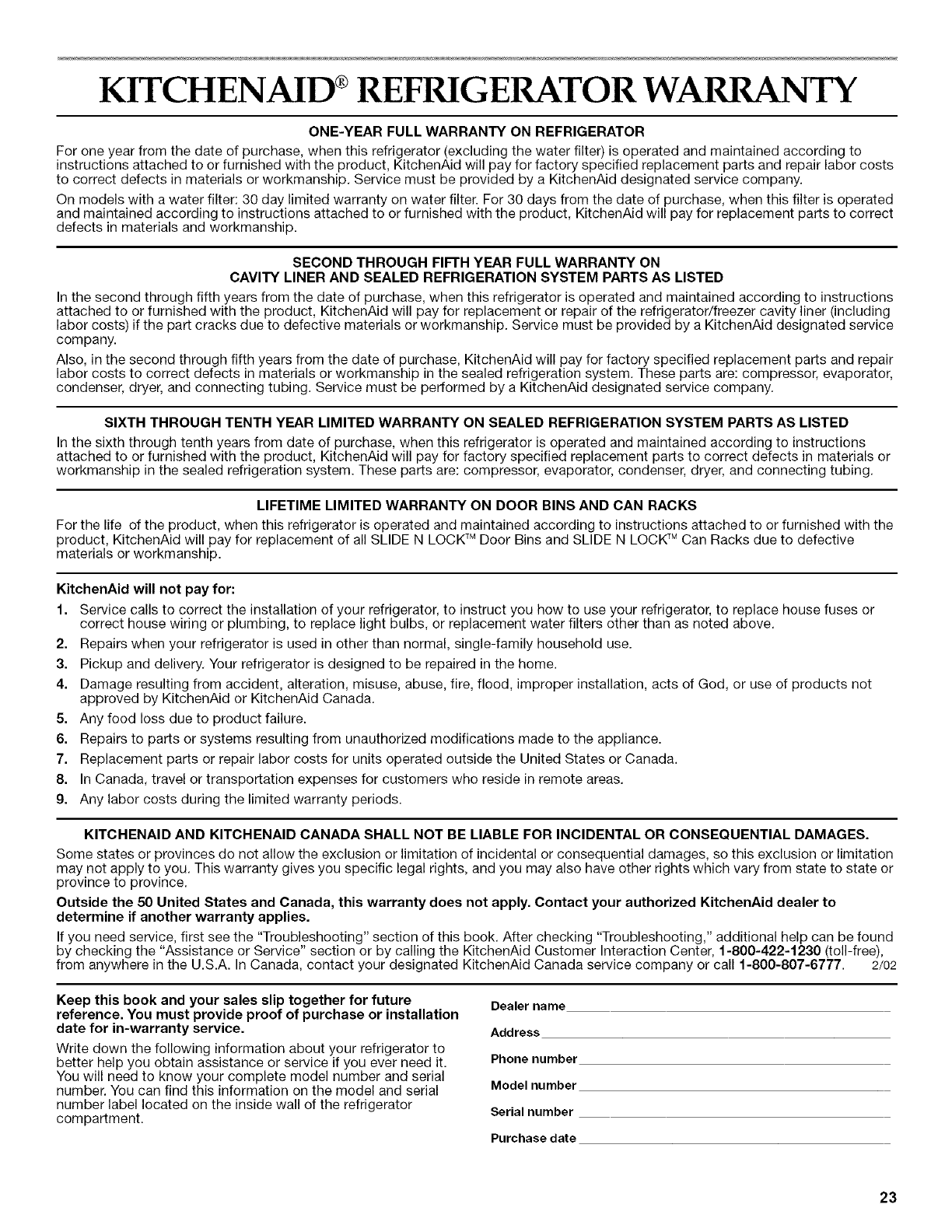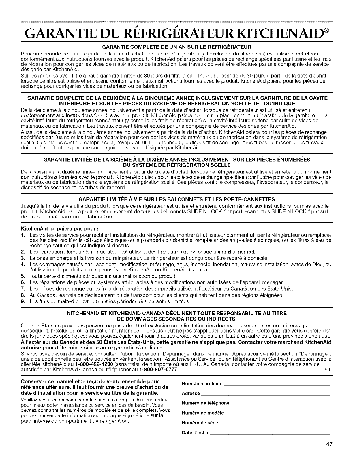 autorisee par KitchenAid Canada ou telephoner au 1-800-807-6777. 2/02