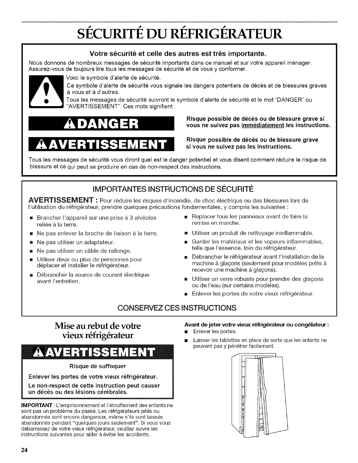 SECURIT¢: DU REFRIGERATEUR ........................................... 24