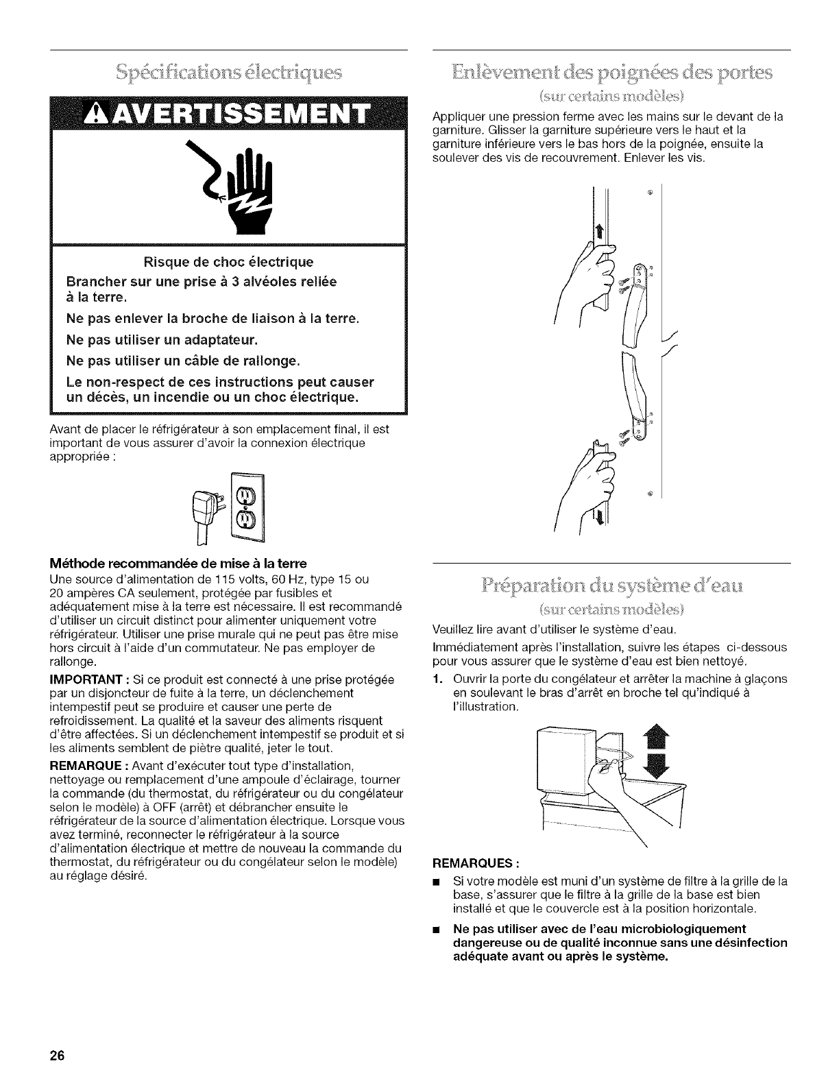 Preparation du systeme d'eau ................................................... 26