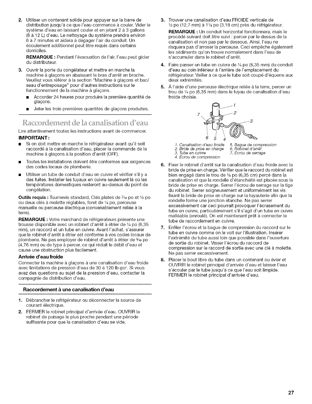 Raccordement de la canalisation d'eau .................................... 27