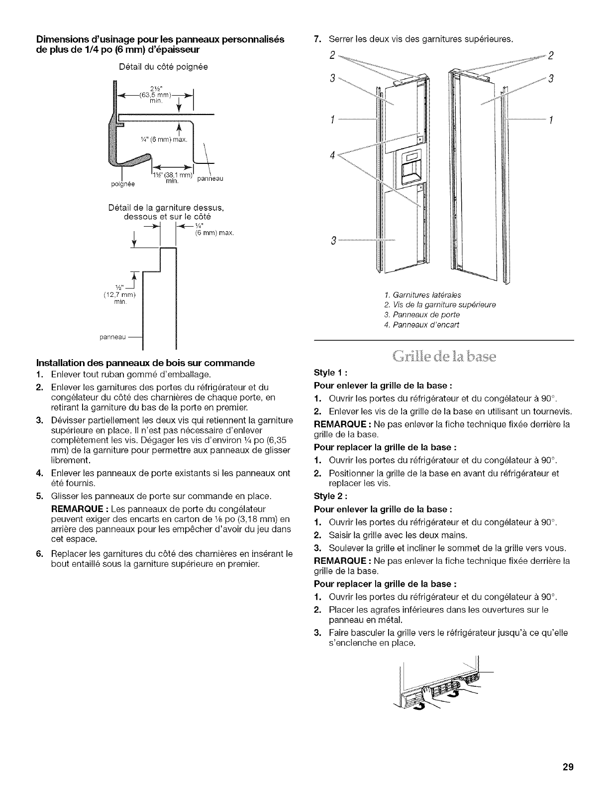 Panneaux de porte sur commande ........................................... 28