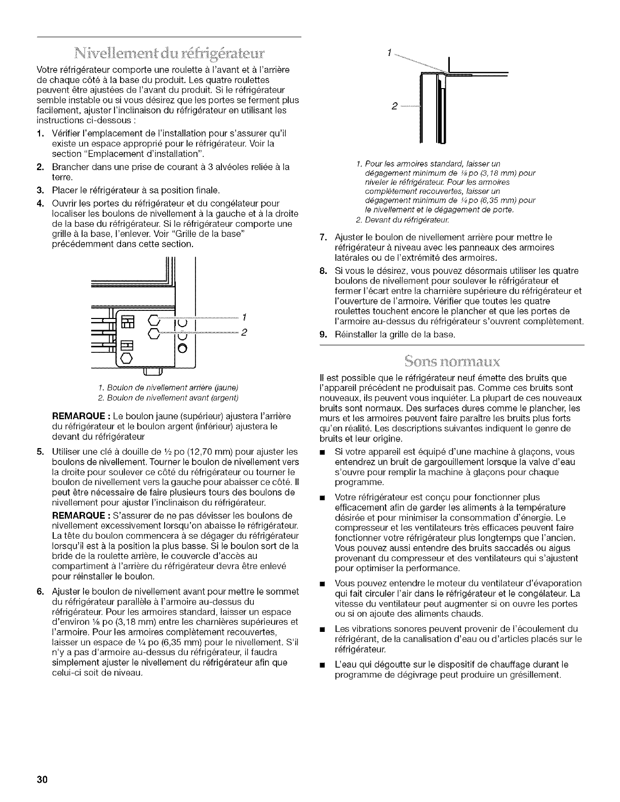 Nivellement du refrigerateur ....................................................... 30