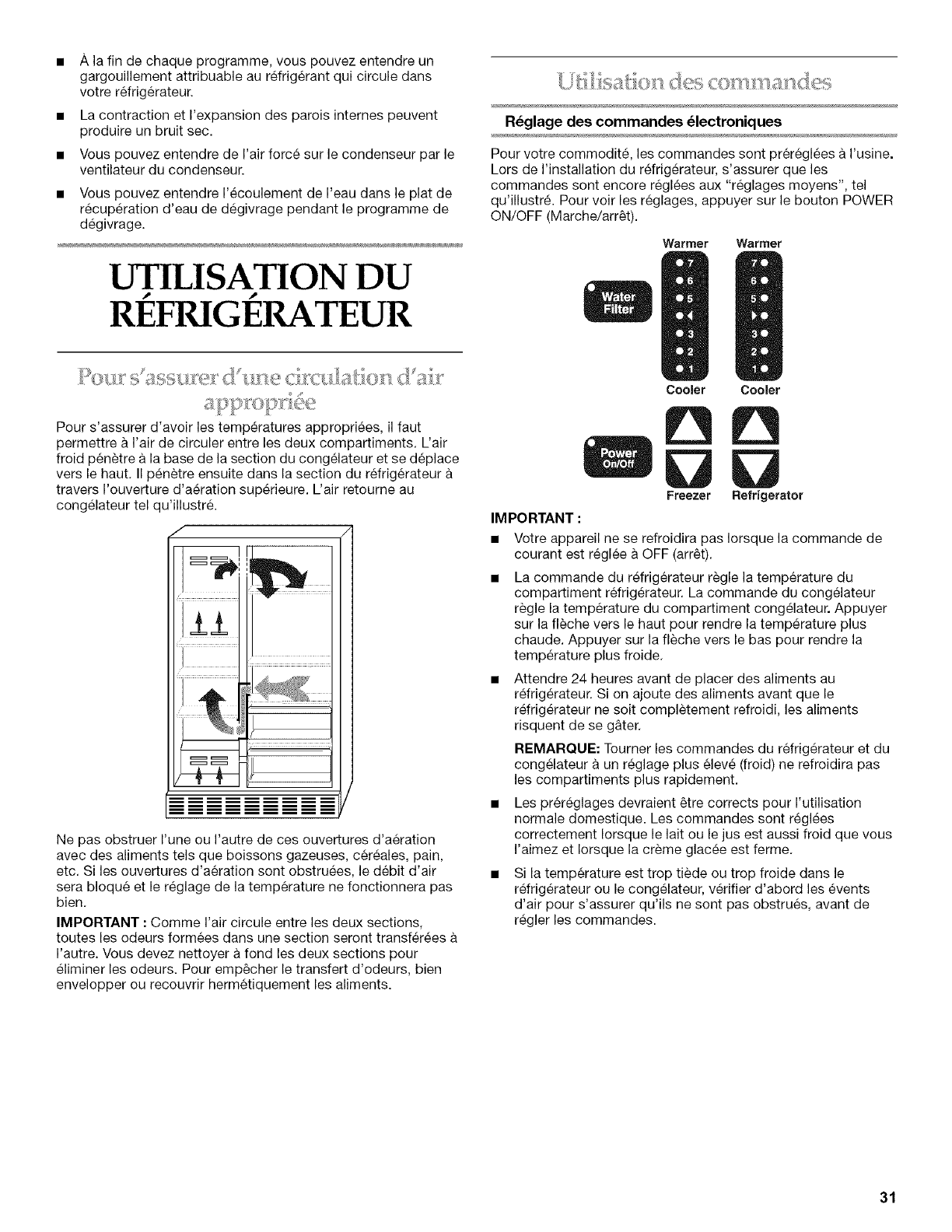 UTILISATION DU REFRIGERATEUR .......................................... 31