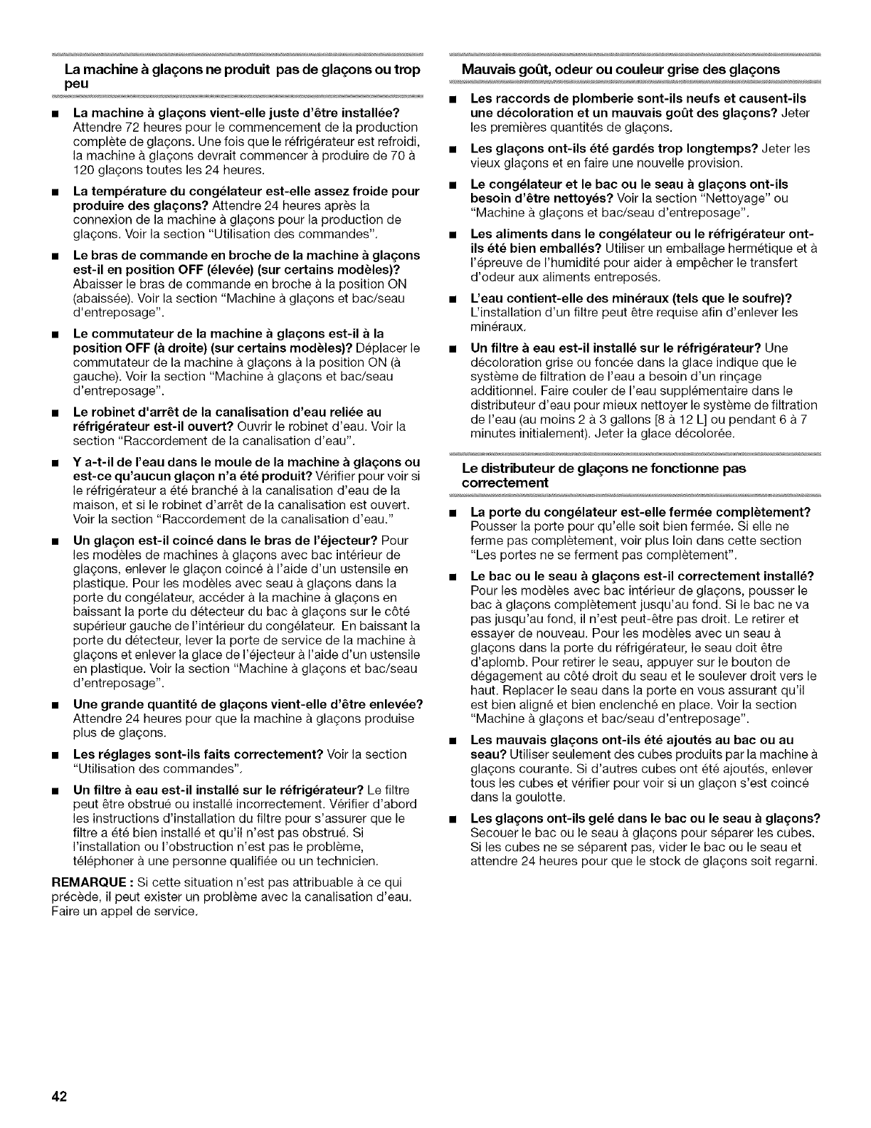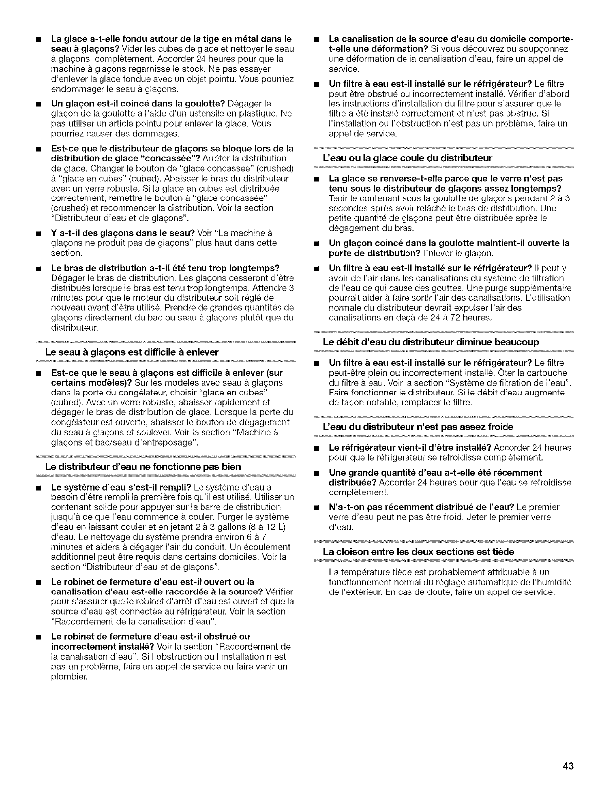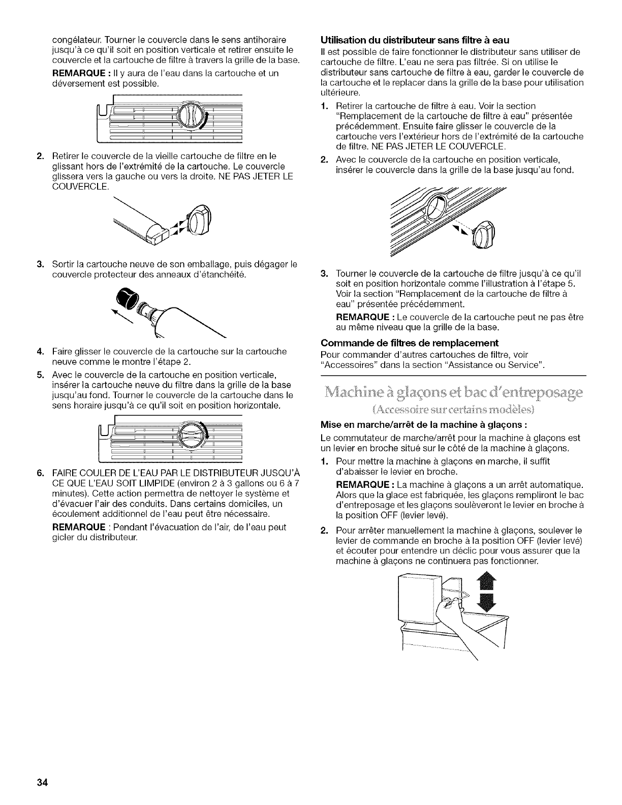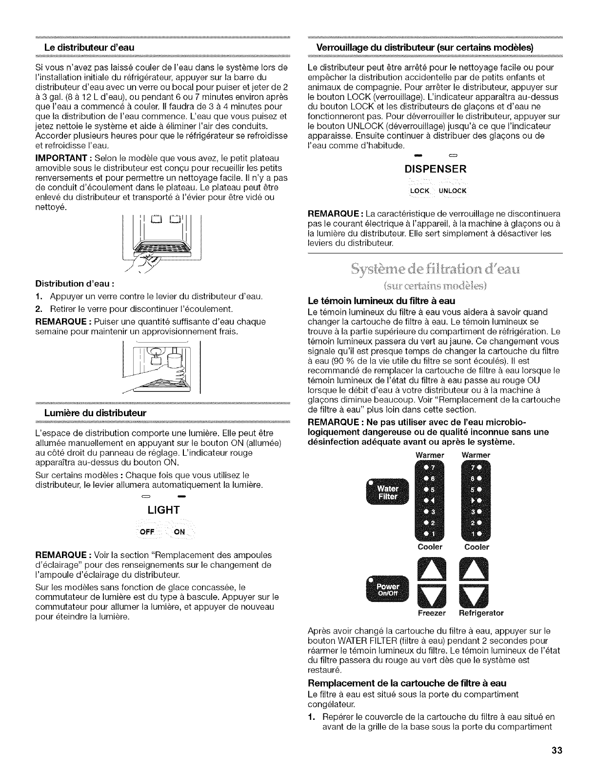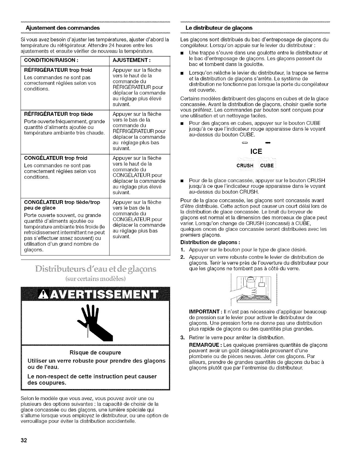 Distributeurs d'eau et de glagons .............................................. 32