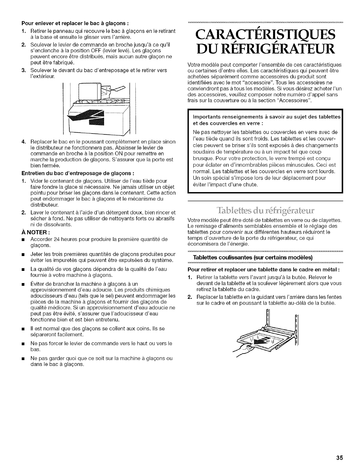 Tablettes du refrigerateur ........................................................... 35