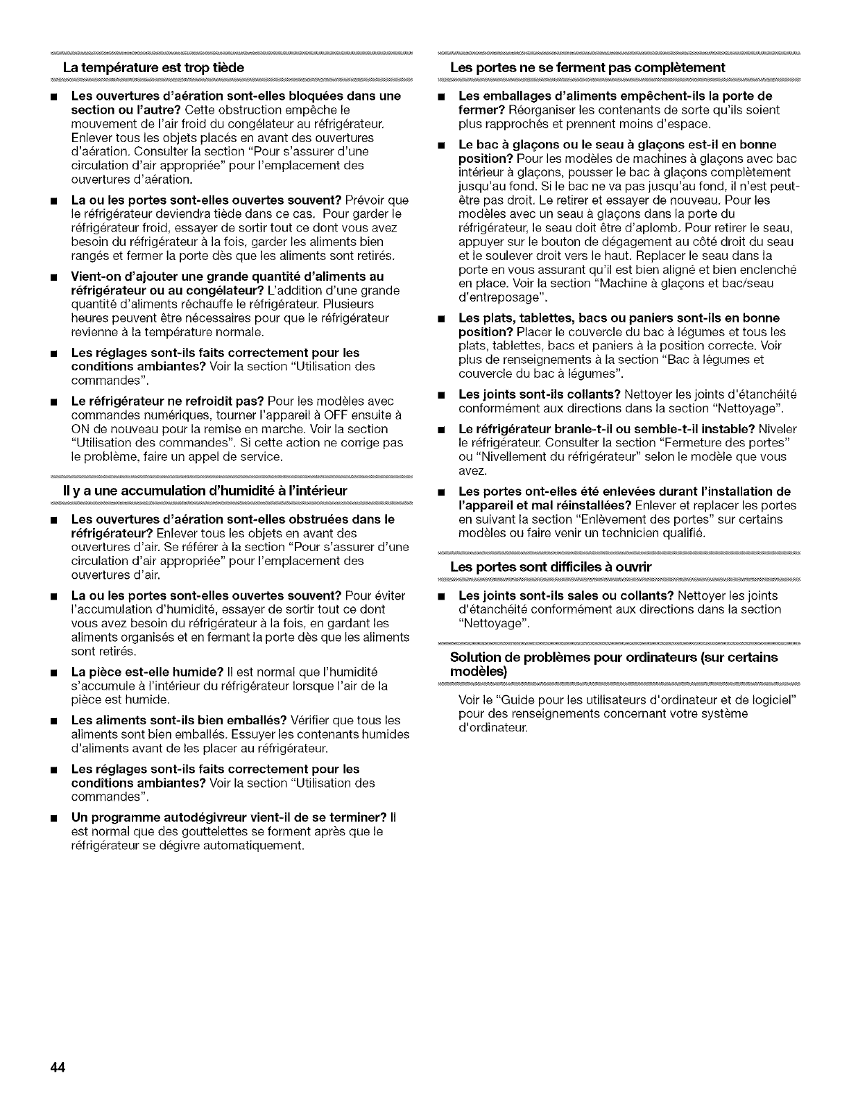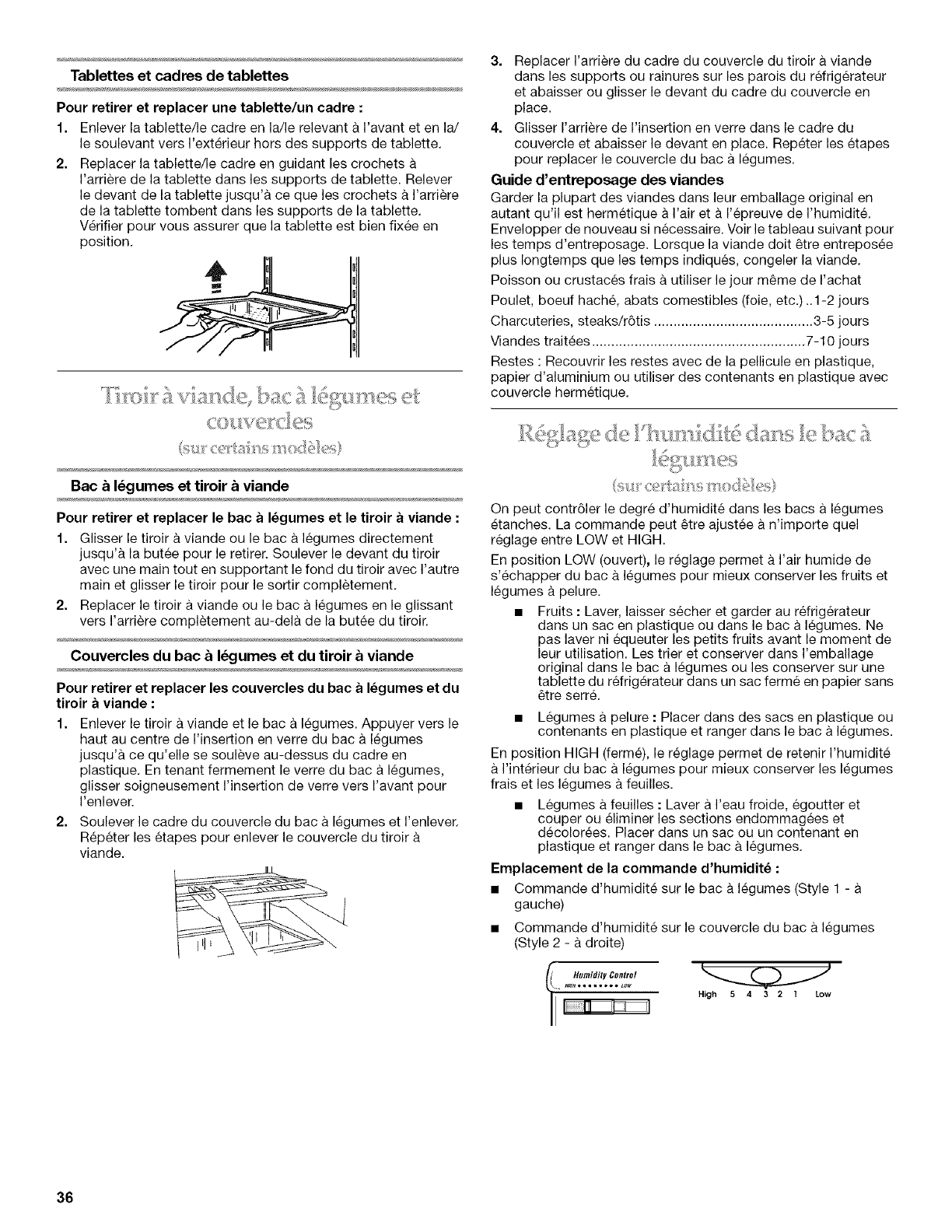 Reglage de I'humidite dans les bacs a legumes ....................... 36