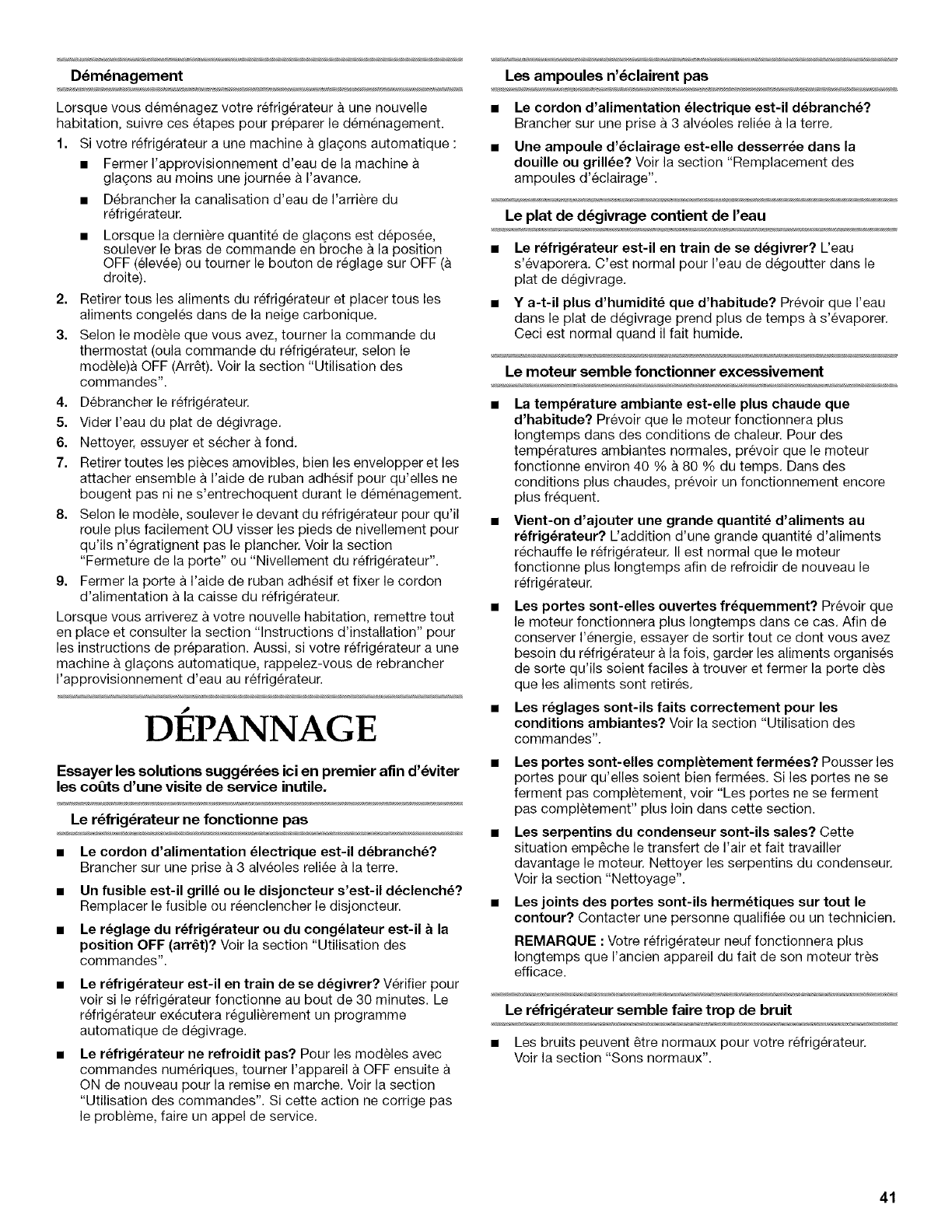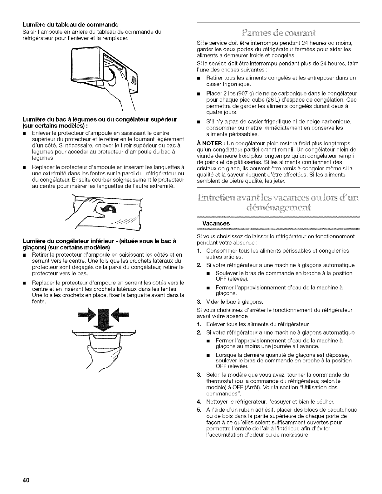 Entretien avant les vacances ou Iors d'un demenagement ....... 40