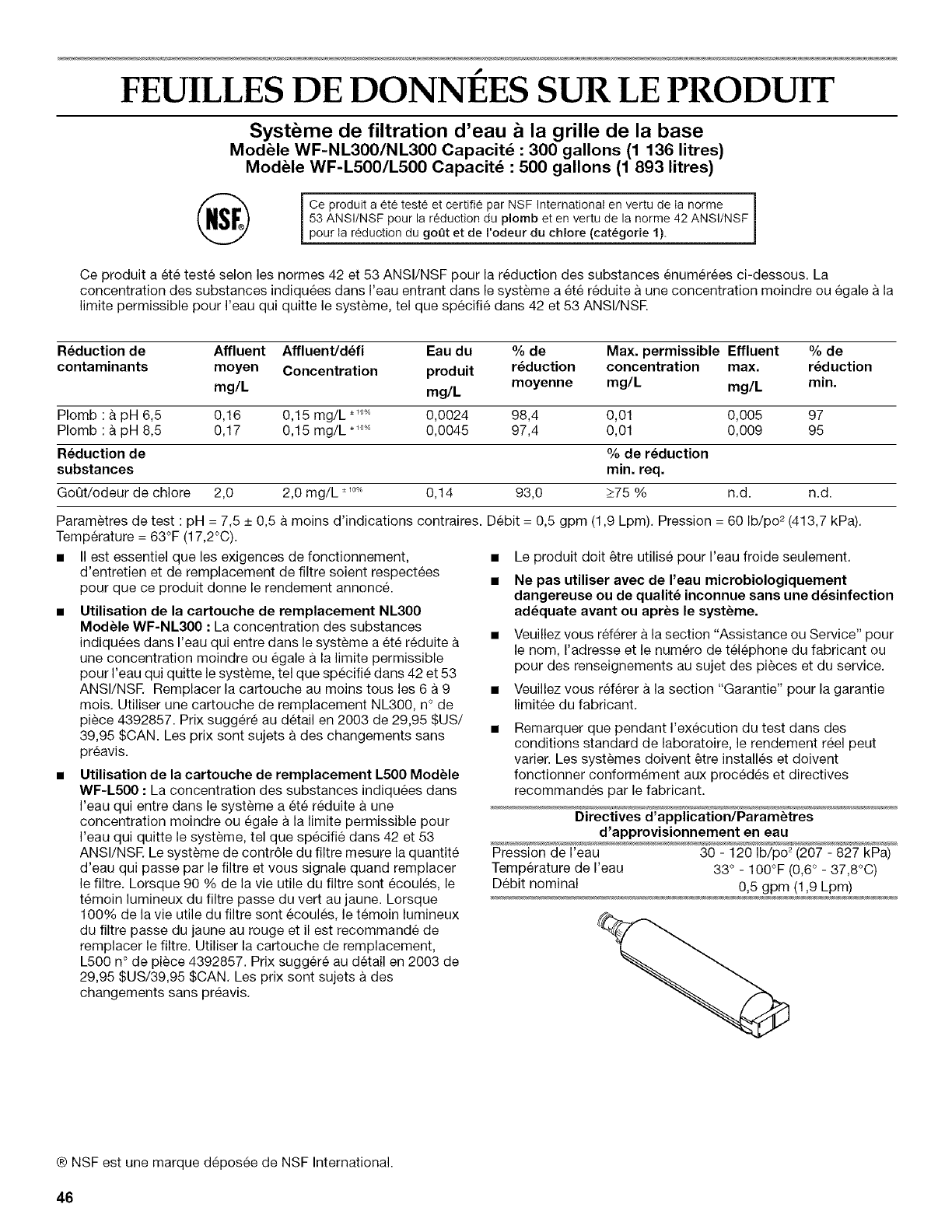 ® NSF est une marque d6pos6e de NSF International.
