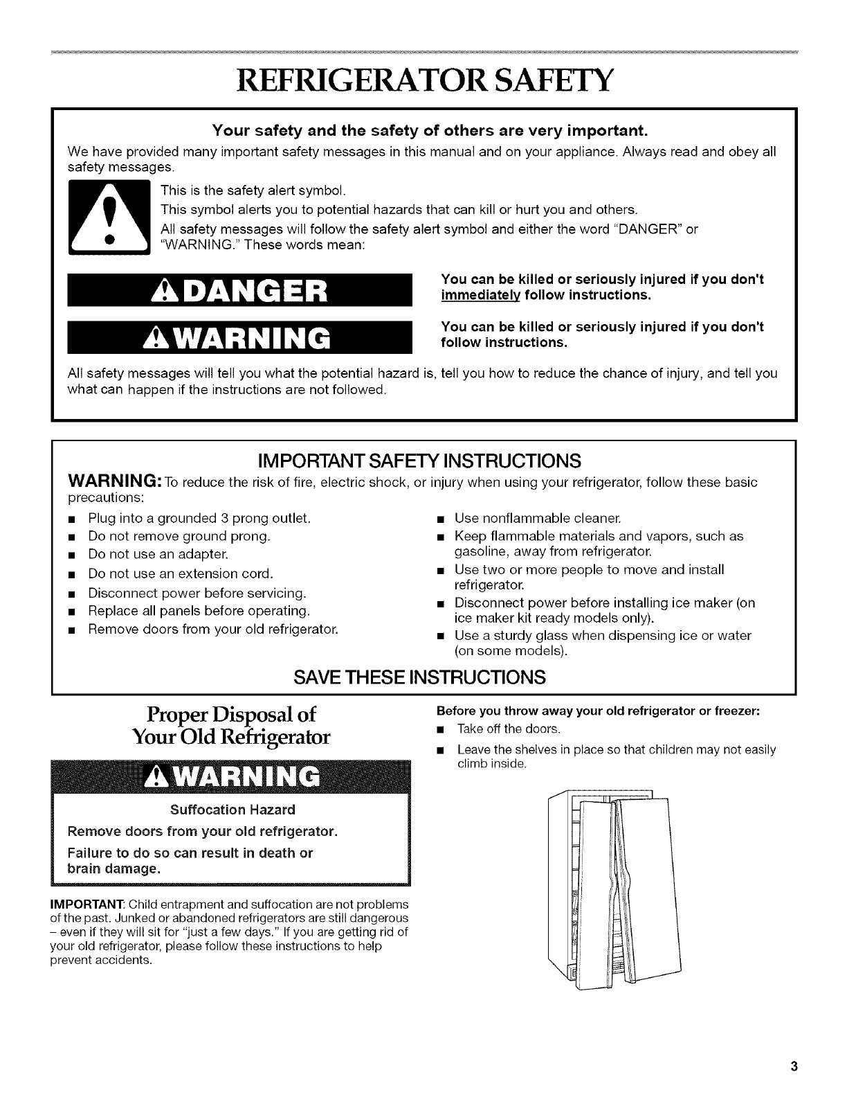 REFRIGERATOR SAFETY .......................................................... 3