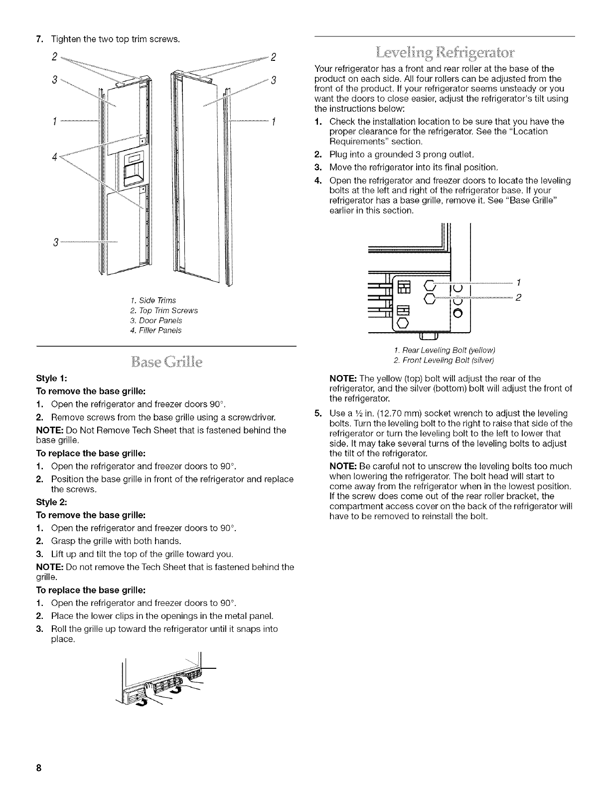 Leveling Refrigerator .................................................................... 8