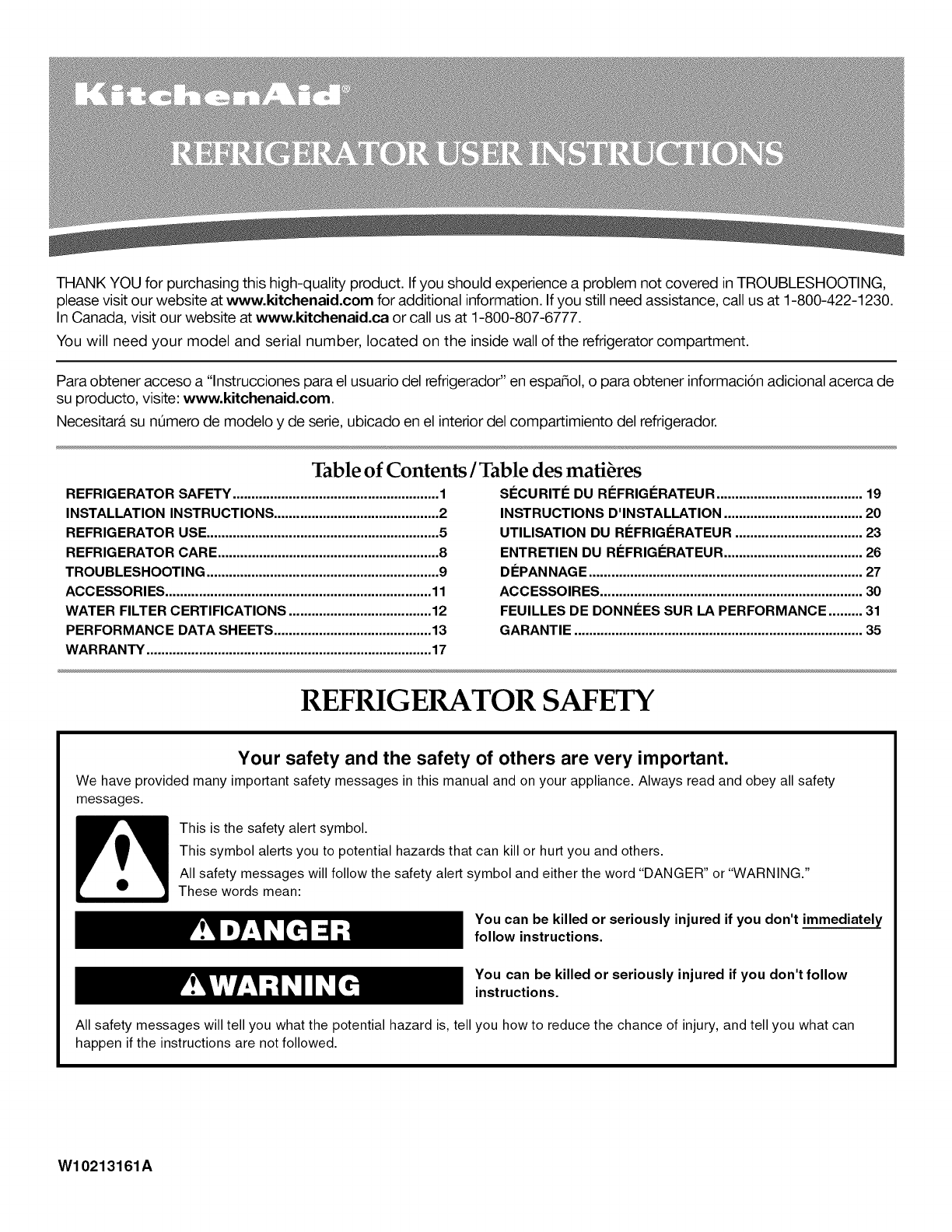 Kitchenaid KSRS22MWMS00 User Manual REFRIGERATOR Manuals And Guides L1005223