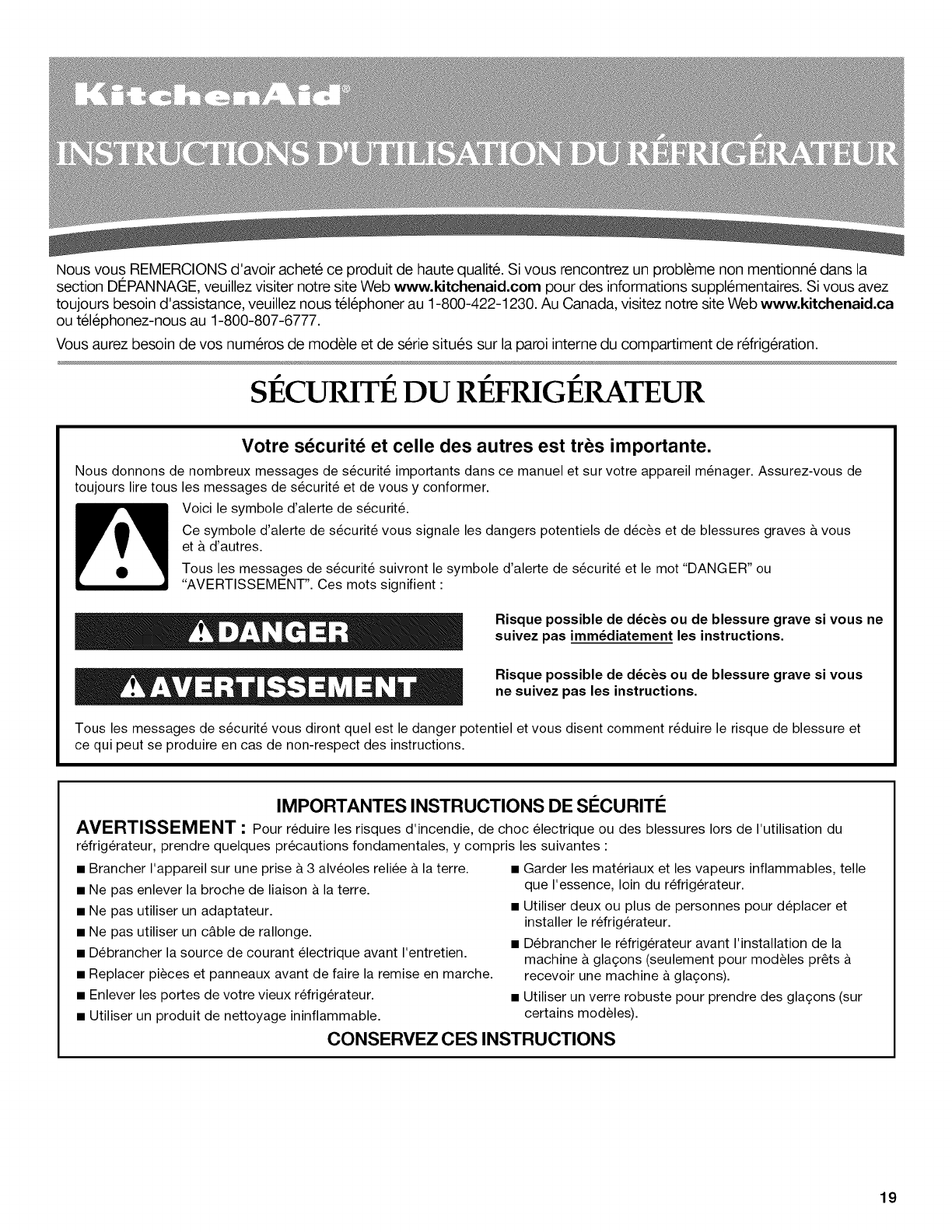 SECURITE DU REFRIGERATEUR ....................................... 19