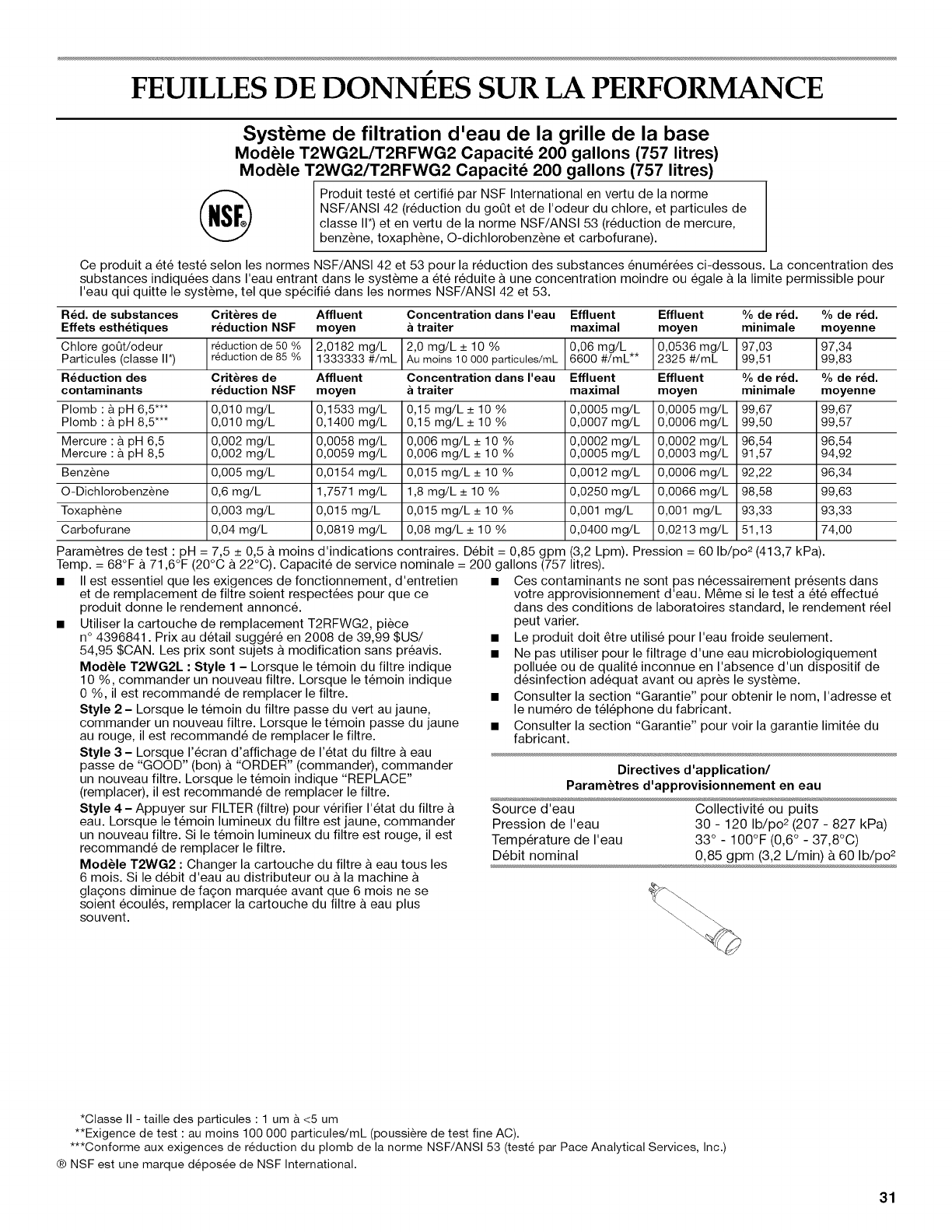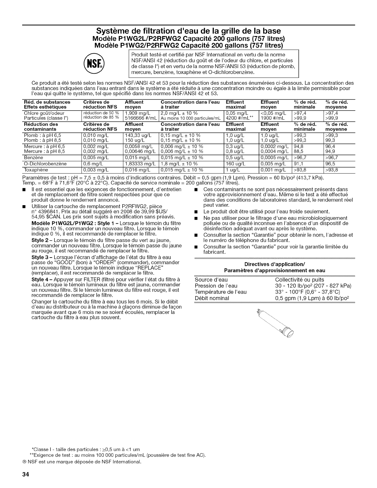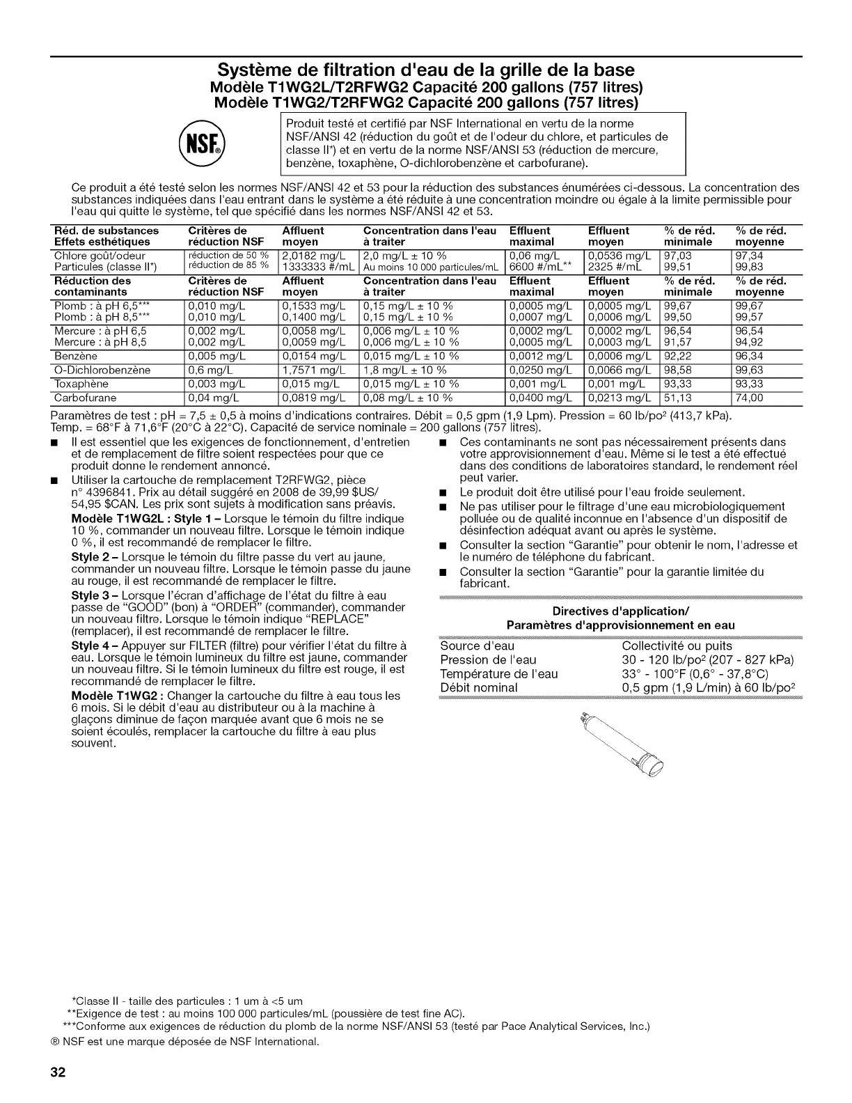 Sur les modeles avec un filtre & eau : garantie limitae de 30 jours sur le filtre & eau. Pendant 30 jours & compter de la date d'achat, Iorsque ce filtre est
