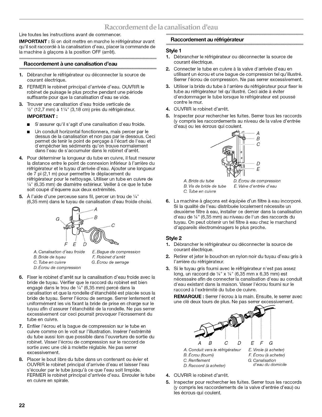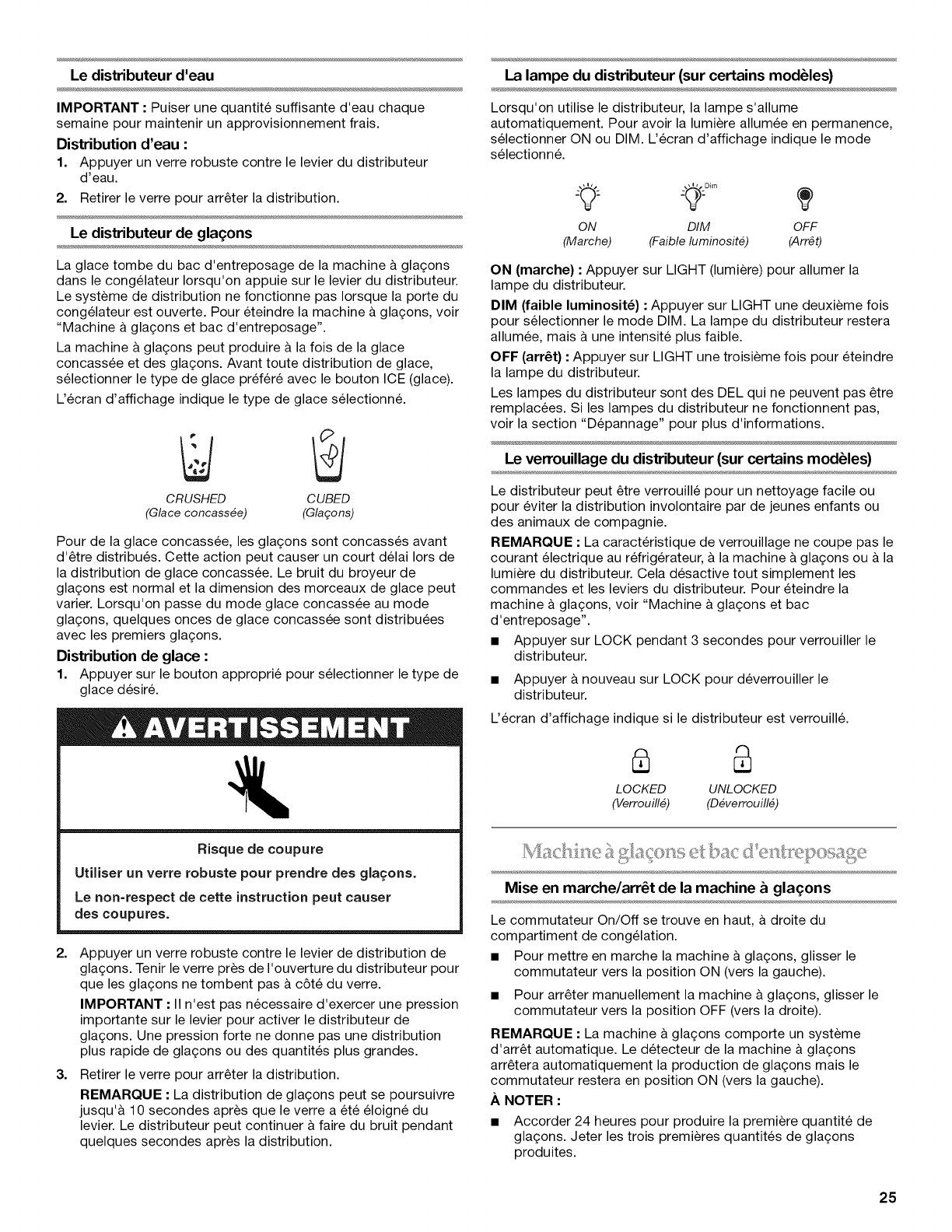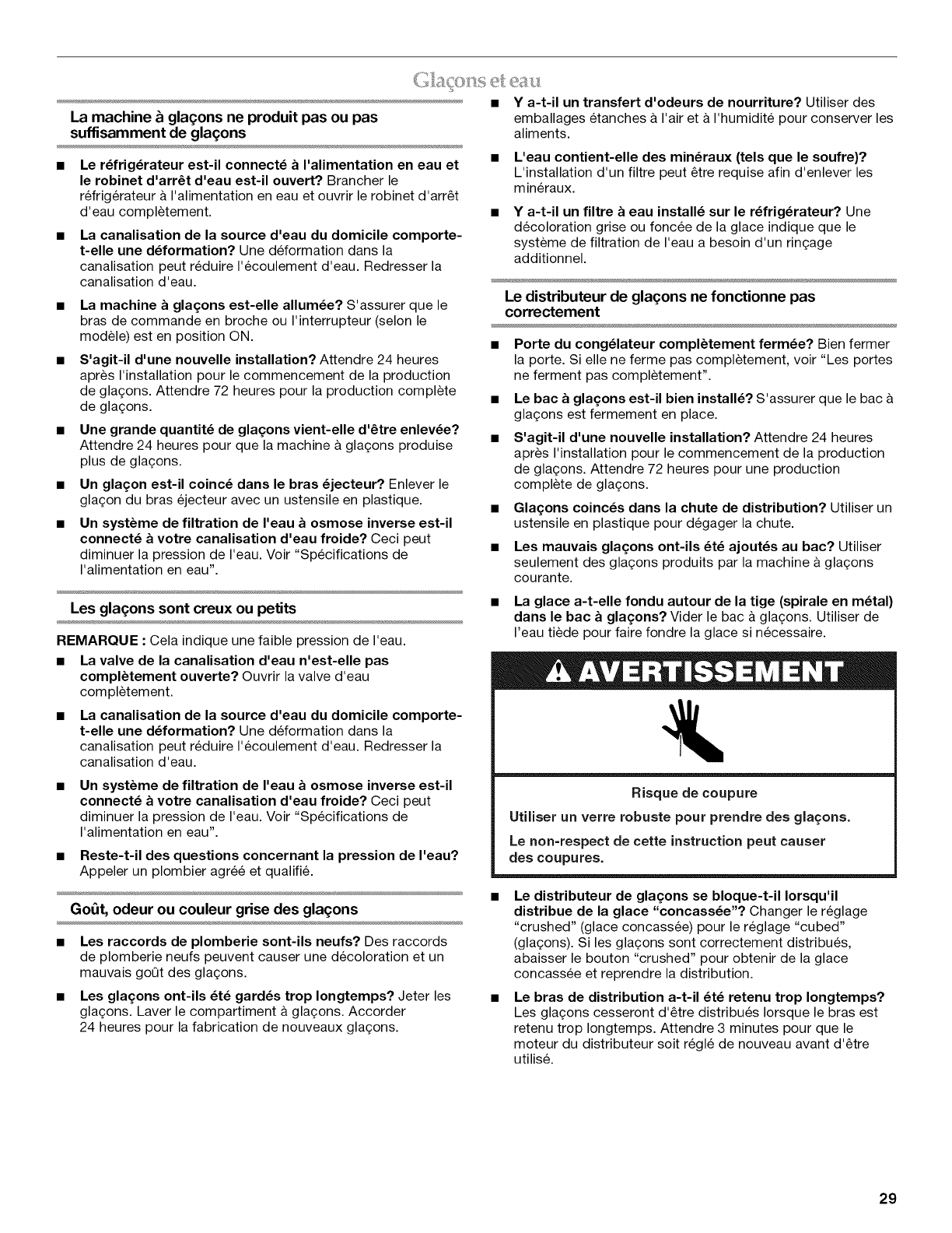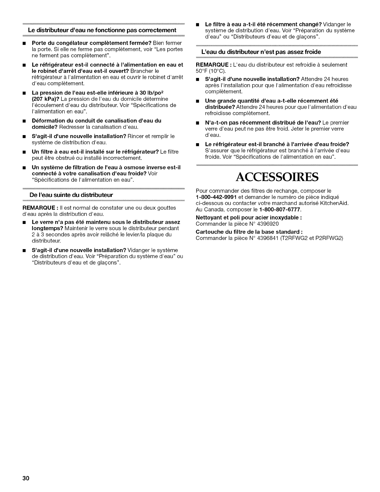 Sur les modeles avec un filtre & eau : garantie limitae de 30 jours sur le filtre & eau. Pendant 30 jours & compter de la date d'achat, Iorsque ce filtre est