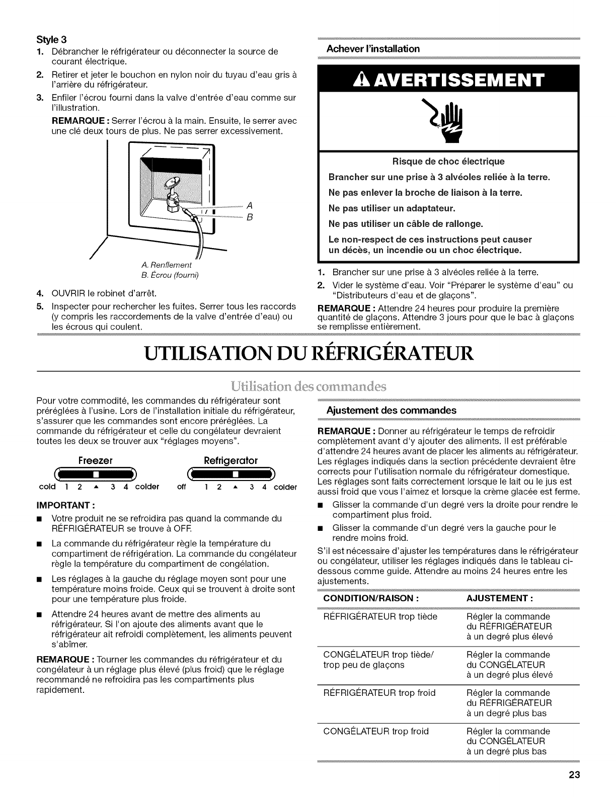 UTILISATION DU REFRIGERATEUR .................................. 23