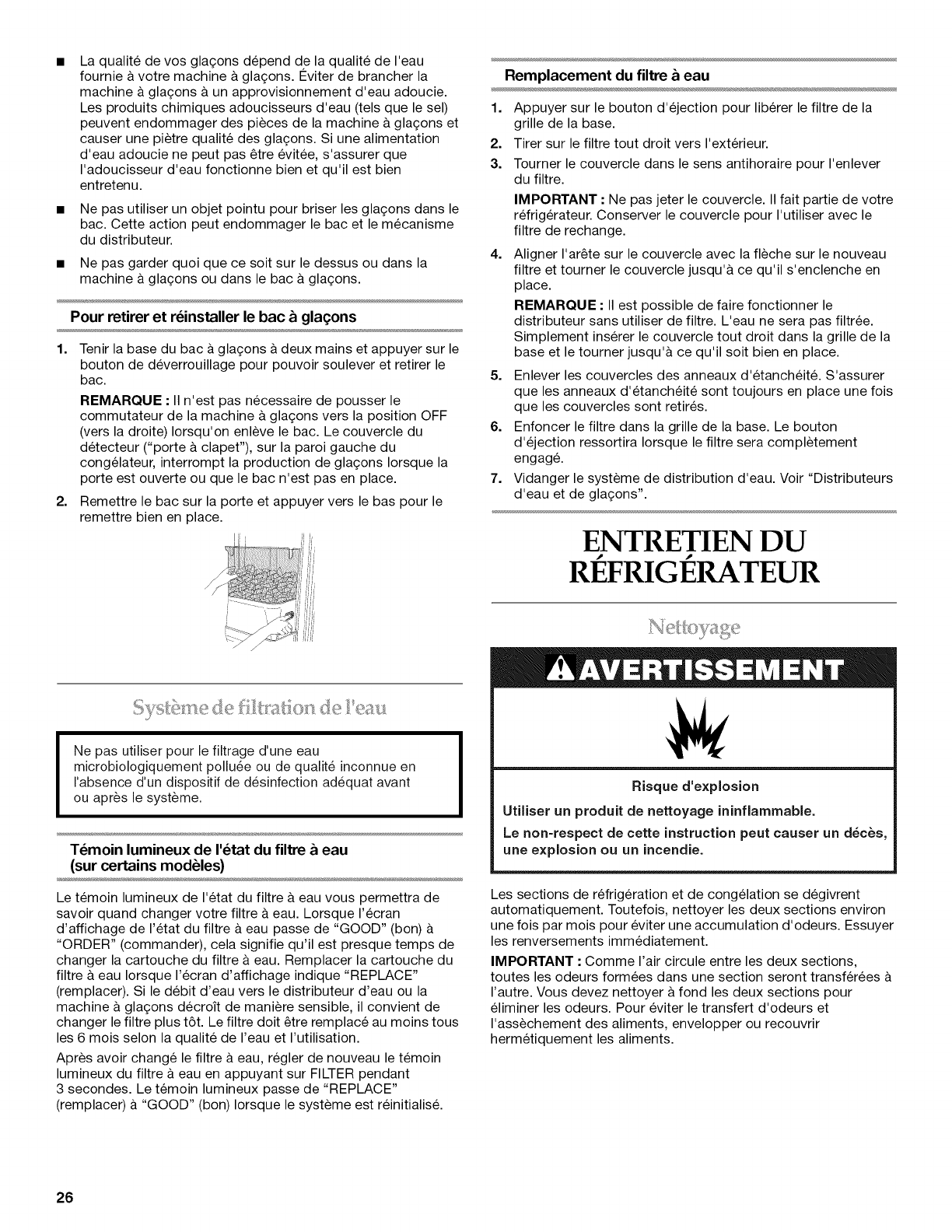 utilisa et entretenu conformament aux instructions jointes & ou foumies avec le produit, KitchenAid paiera pour un filtre & eau de rechange pour