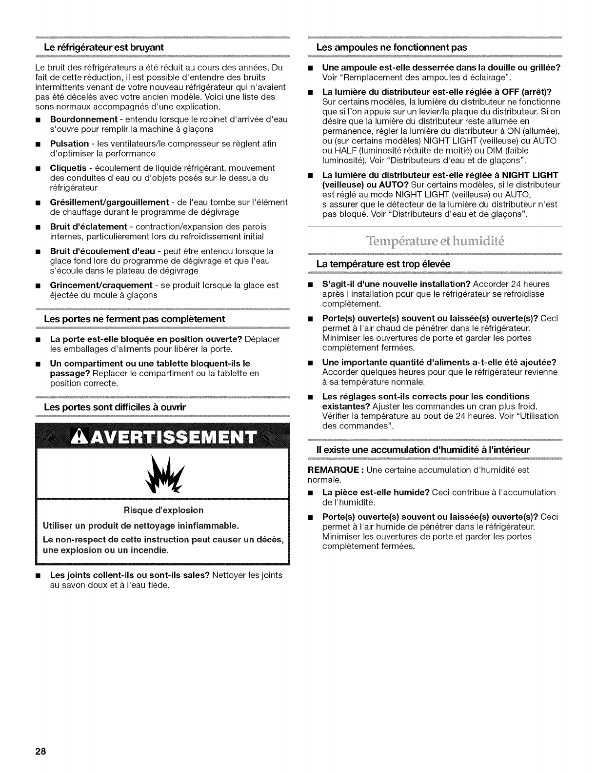 ENTRETIEN DU REFRIGERATEUR ..................................... 26