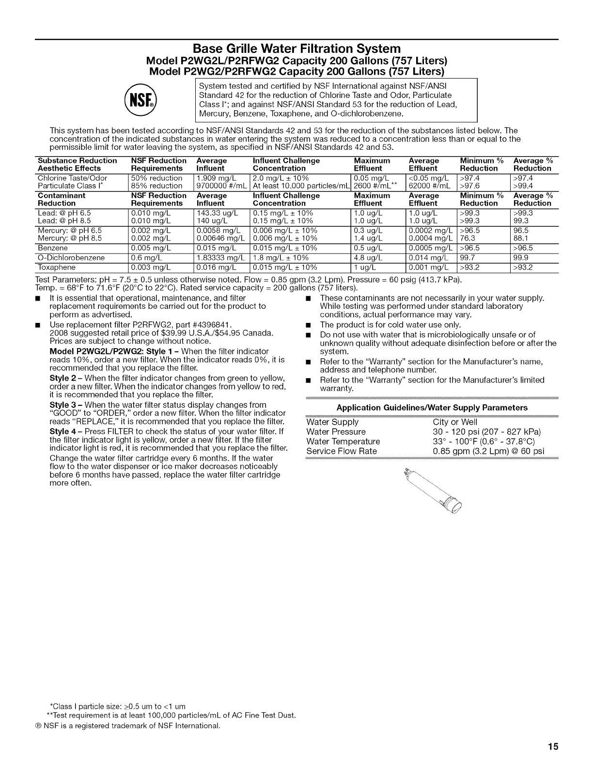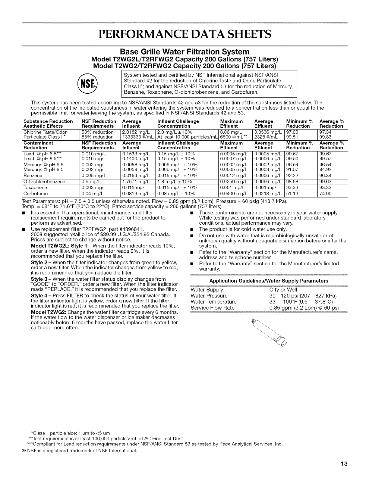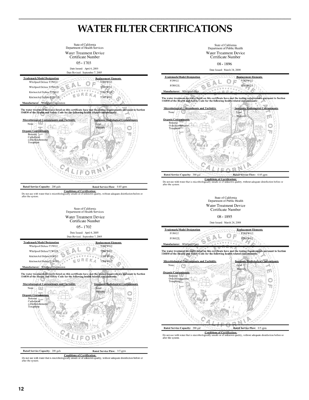 WATER FILTER CERTIFICATIONS ...................................... 12