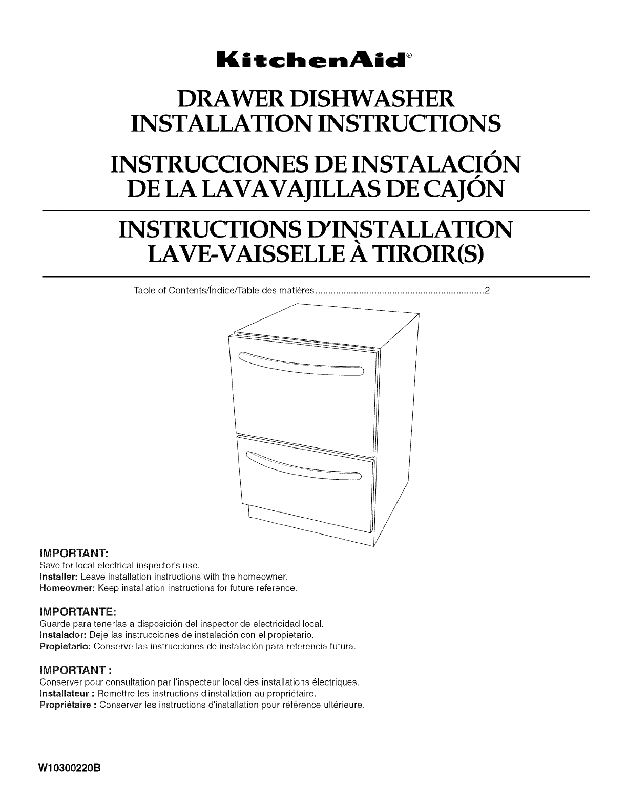User Manual: Kitchenaid KUDD03DTBL3 KUDD03DTBL3 KITCHENAID DRAWER DISHWASHER - Manuals and Guides View the owners manual for your KITCHENAID DRAWER DISHWASHER #KUDD03DTBL3. Home:Kitchen Appliance Parts:Kitchenaid Parts:Kitchenaid DRAWER DISHWASHER Manual