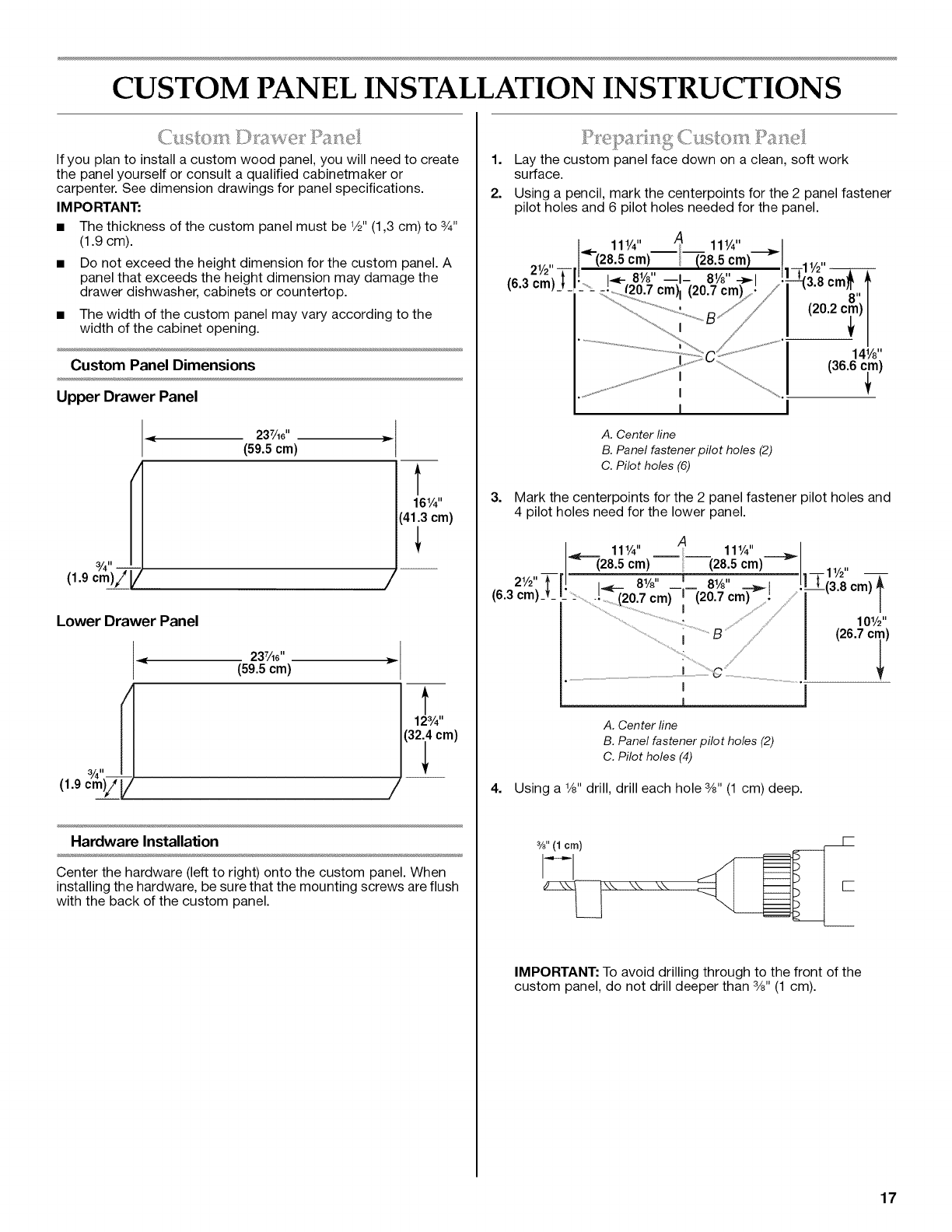 CUSTOM PANEL INSTALLATION INSTRUCTIONS ............................. 17