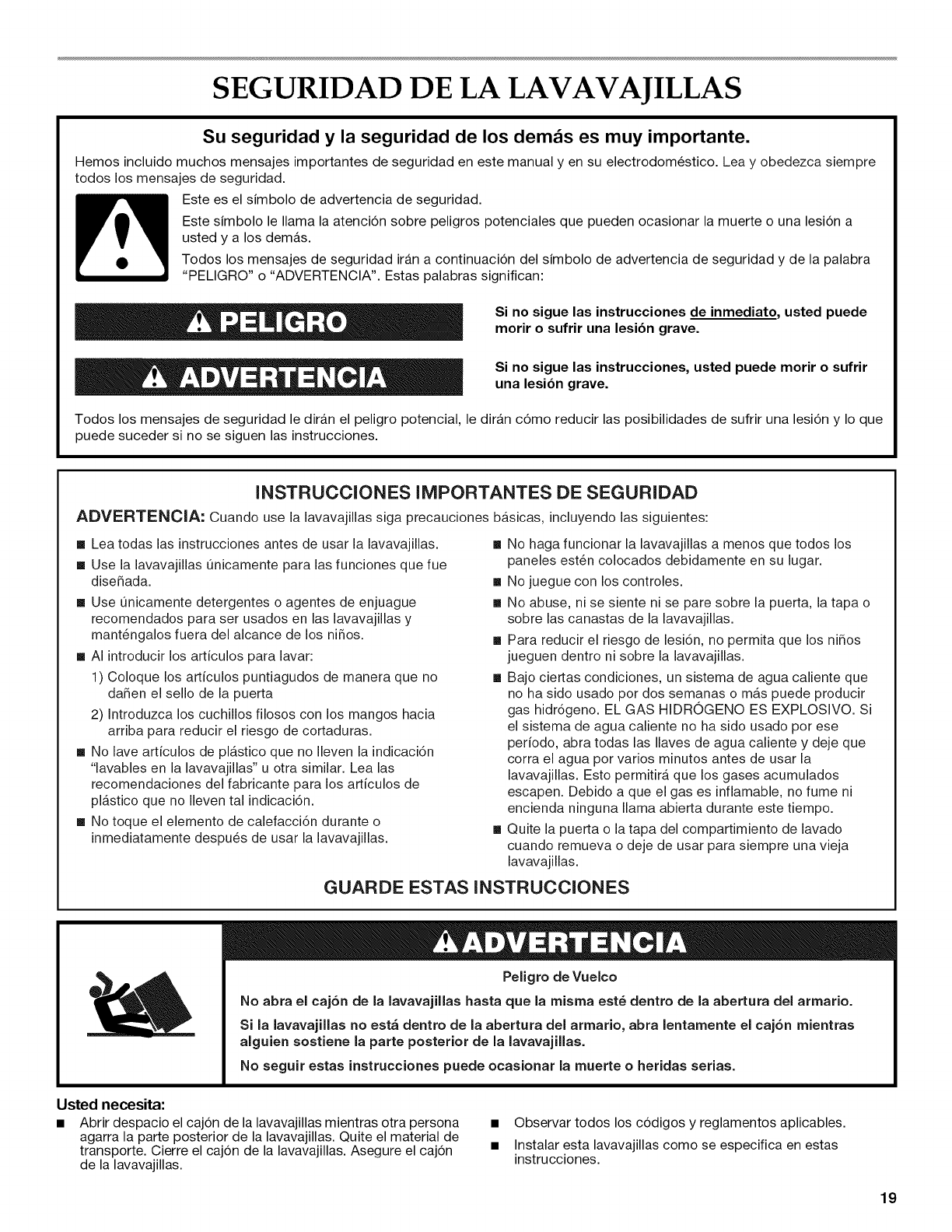 SEGURIDAD DE LA LAVAVAJILLAS ...................................................... 19