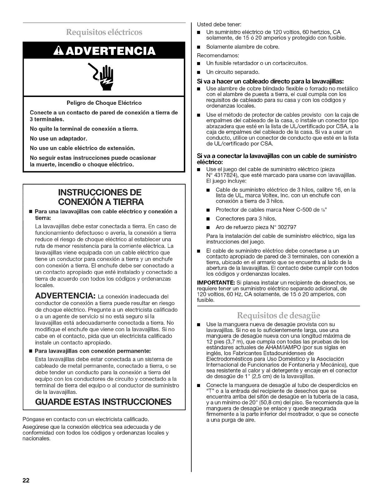 Requisitos electricos .............................................................................. 22