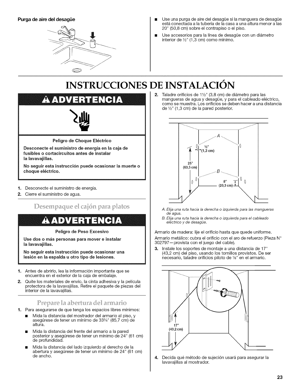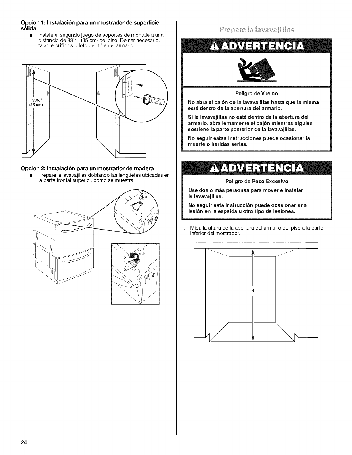 Prepare la abertura del armario ............................................................. 23