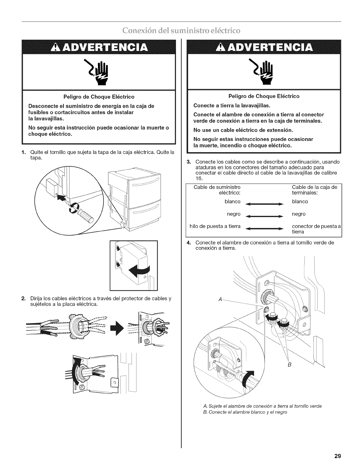 Conexi6n del suministro electrico ......................................................... 29