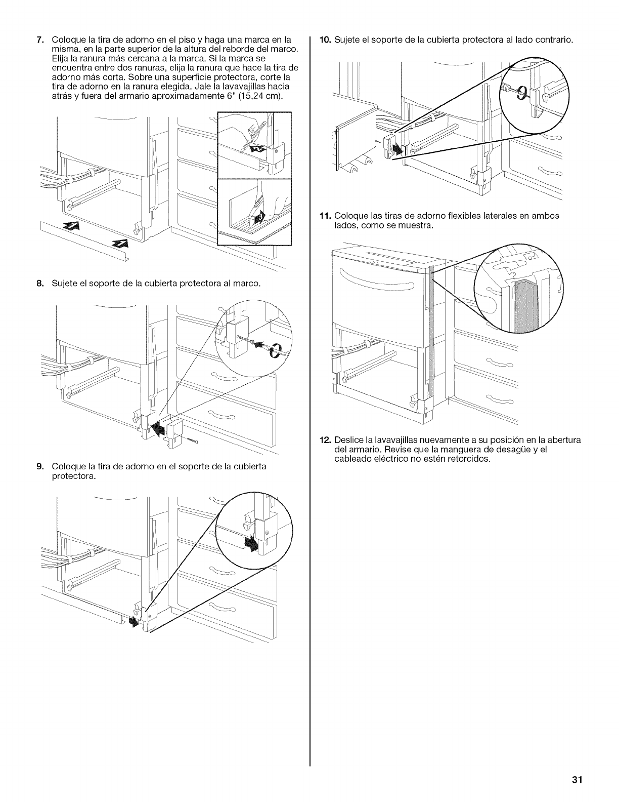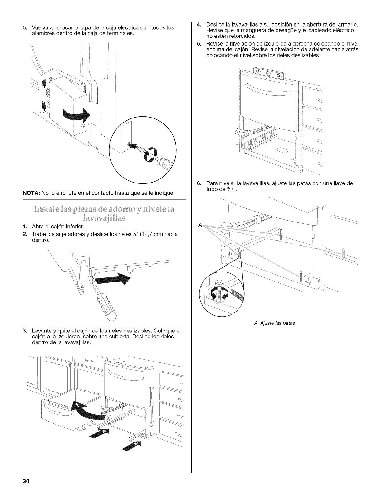 Instale las piezas de adorno y nivele la lavavajillas ............................... 30