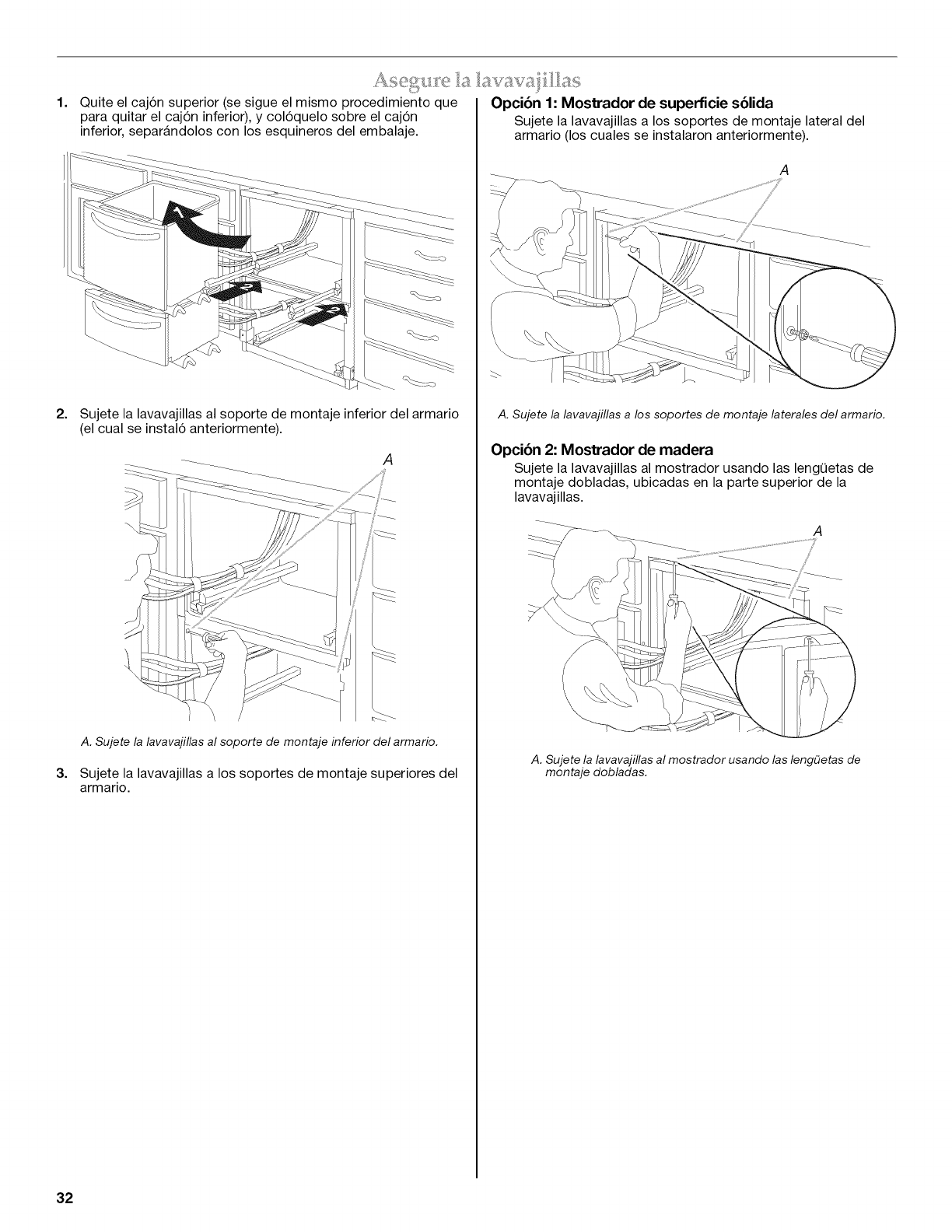 Asegure la lavavajillas ............................................................................ 32