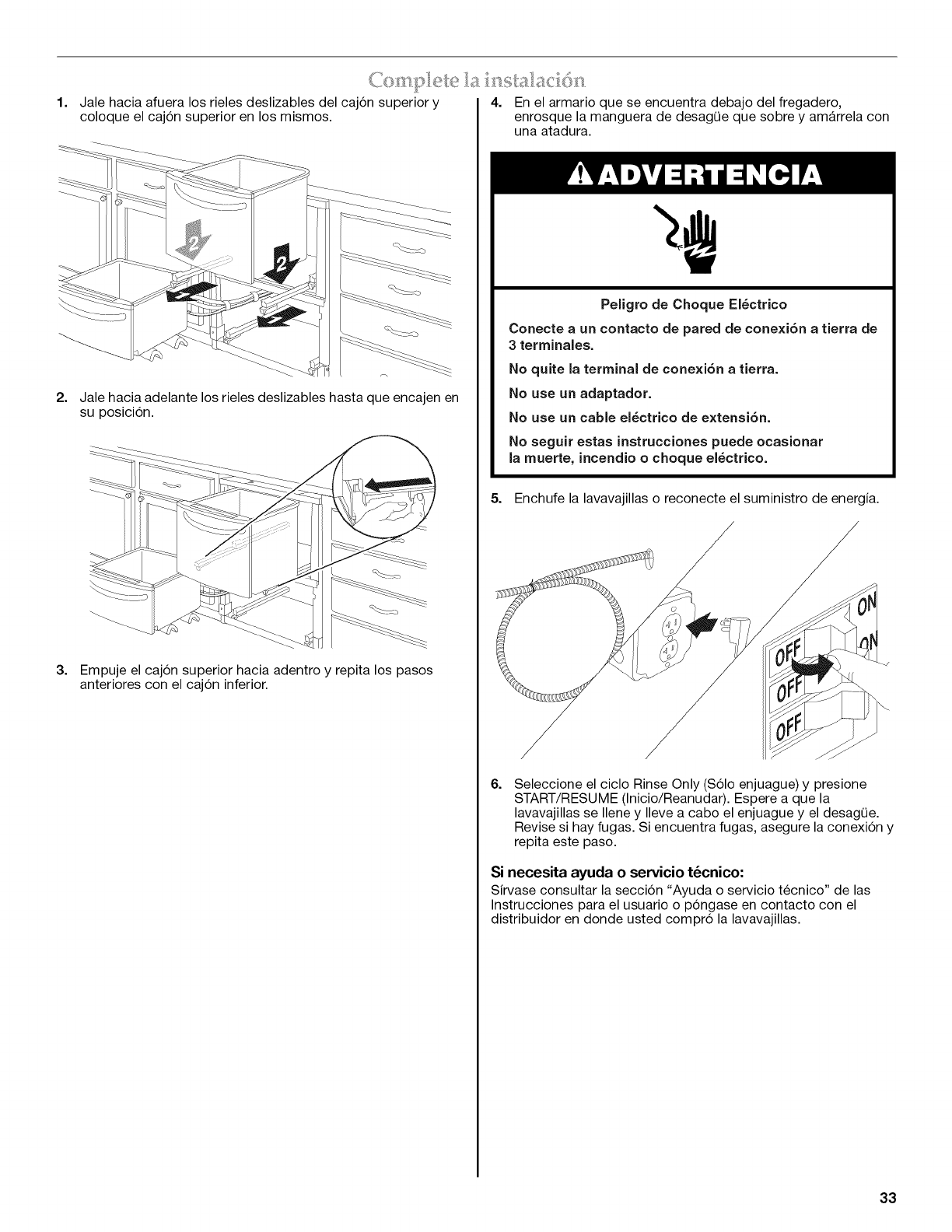Complete la instalaci6n ......................................................................... 33