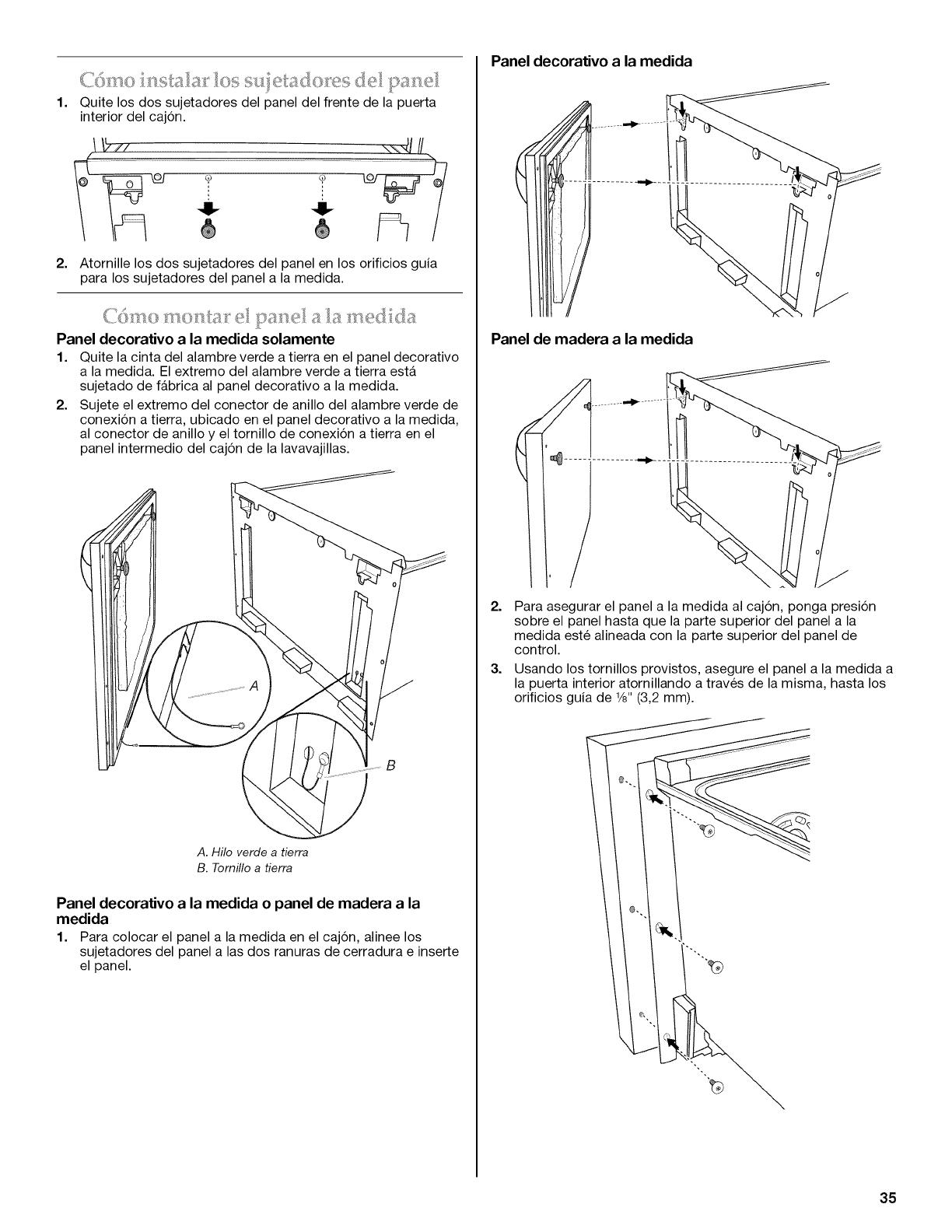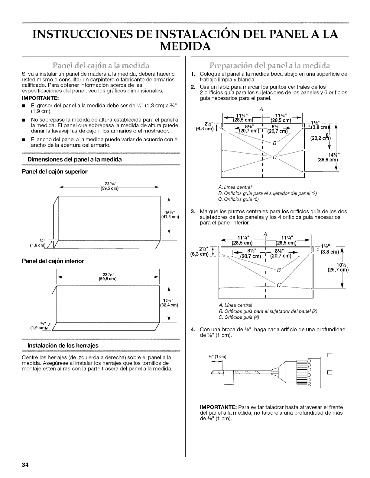 Preparaci6n del panel a la medida ........................................................ 34